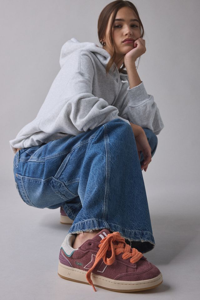 - ارتداء Suede Sneakers بلون ترابي مع جينز مستقيم القصة وقميص كلاسيكي يمنح إطلالة بسيطة وراقية.