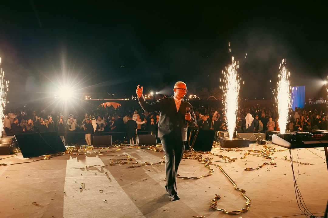 الهضبة عمرو دياب يُشعل حفل ضخم خاص في أبو ظبي احتفالا بإطلاق أول برج يعمل بالذكاء الاصطناعي| صور