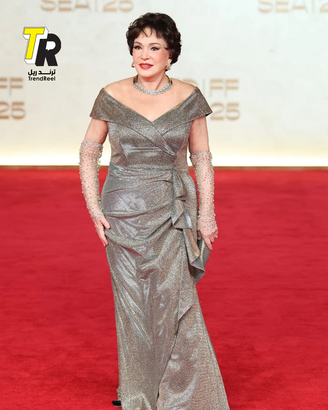 لبلبة تألقت بفستان فضي لامع أضفى عليها حضورا مرحا وأنيقا يعكس طابعها المحبب لدى الجمهور.
