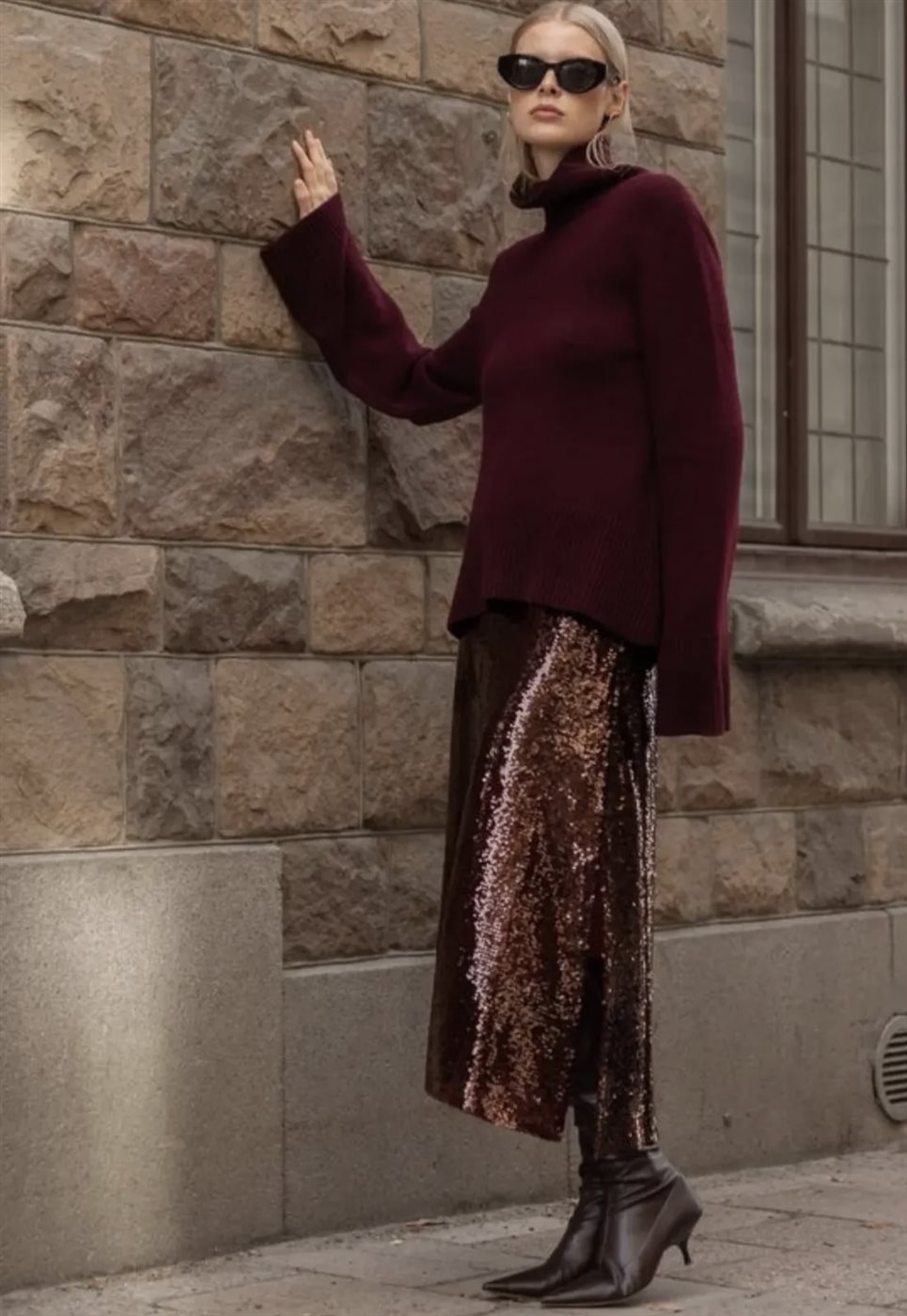 وختاماً في موسم الشتاء، تثبت التنورة بالترتر أنها قطعة متعددة الاستخدامات تتجاوز حدود السهرة، لتدخل عالم الإطلالات اليومية والأنيقة على حد سواء. ومع التنسيق الصحيح الذي يجمع بين الخامات الدافئة والقصّات الكلاسيكية، تتحول هذه القطعة اللامعة إلى عنصر أساسي يمنح الإطلالة طابعاً مميزاً وحضوراً لافتاً. إنها دعوة لكسر القواعد التقليدية، واحتضان الموضة بجرأة وثقة حتى في أبرد أيام الشتاء.