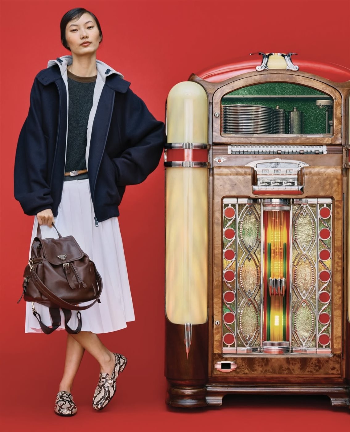 تحت القيادة الإبداعية المشتركة لكل من ميوتشيا برادا وراف سيمونز، تتجسد المجموعة كحوار مفتوح مع التناقضات، حيث تتحول الأناقة إلى مساحة مرنة تتسع لتعدد الأدوار وتغير الحالات. فالمرأة في مجموعة شتاء 2025 ليست محصورة في قالب واحد، بل هي شخصية متحركة، تتنقل بسلاسة بين النهار والليل، وبين العمل والاحتفال، دون أن تفقد هويتها أو قوتها. هذه الازدواجية المقصودة تعكس وعياً معاصراً بطبيعة الحياة الحديثة، حيث تتداخل المساحات المهنية والاجتماعية، وتفرض على الأزياء أن تكون أكثر قابلية للتكيف.