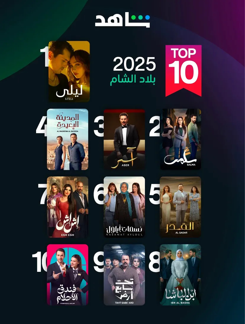 شاهد تكشف قائمة أكثر 10 أعمال مشاهدة في بلاد الشام لعام 2025