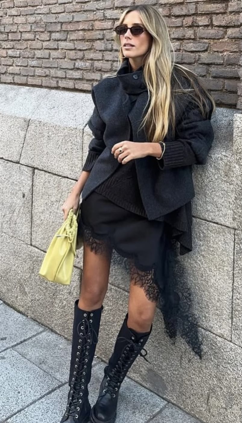 - مع المعطف الطويل: سواء كان معطفًا صوفيًا كلاسيكيًا أو Oversized Coat، فإن ارتداء الـSlip Dress تحته يضفي لمسة راقية تناسب المناسبات المختلفة.