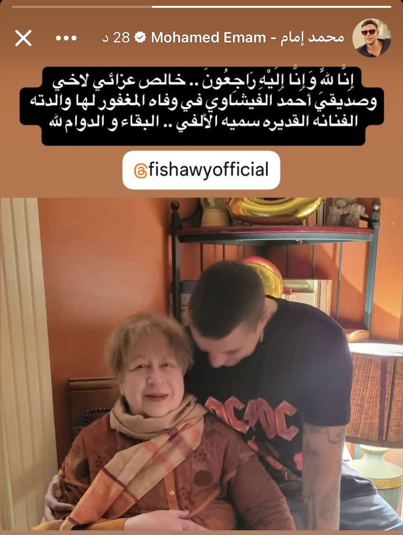 نعى الفنان محمد إمام رحيل الفنانة الكبيرة سمية الألفي حيث كتب عبر حسابه الرسمي على موقع «فيسبوك»