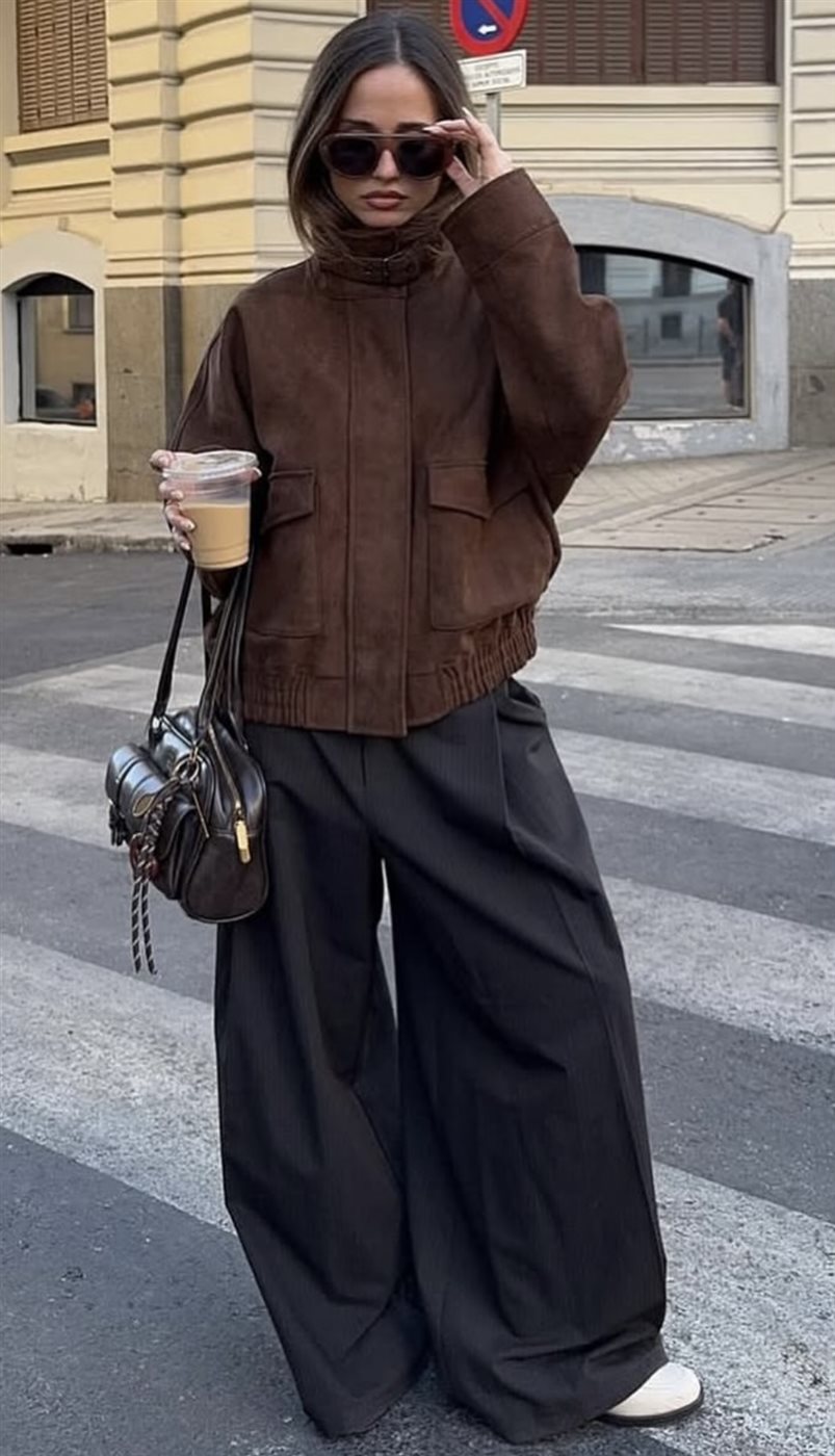 - قاعدة التوازن: مع البنطال الواسع اختاري قمة أقرب للجسم: توب ضيق، قميص محدد الخصر، أو سترة قصيرة (cropped) لتحديد النِّسب.