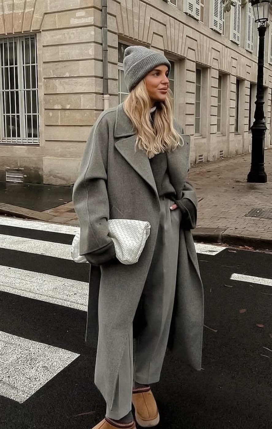 - أسلوب أنيق : قبعة صوفية ناعمة بلون حيادي مع معطف كلاسيكي وبنطال قماشي وحقيبة تضيف لمسة راقية للإطلالة اليومية.