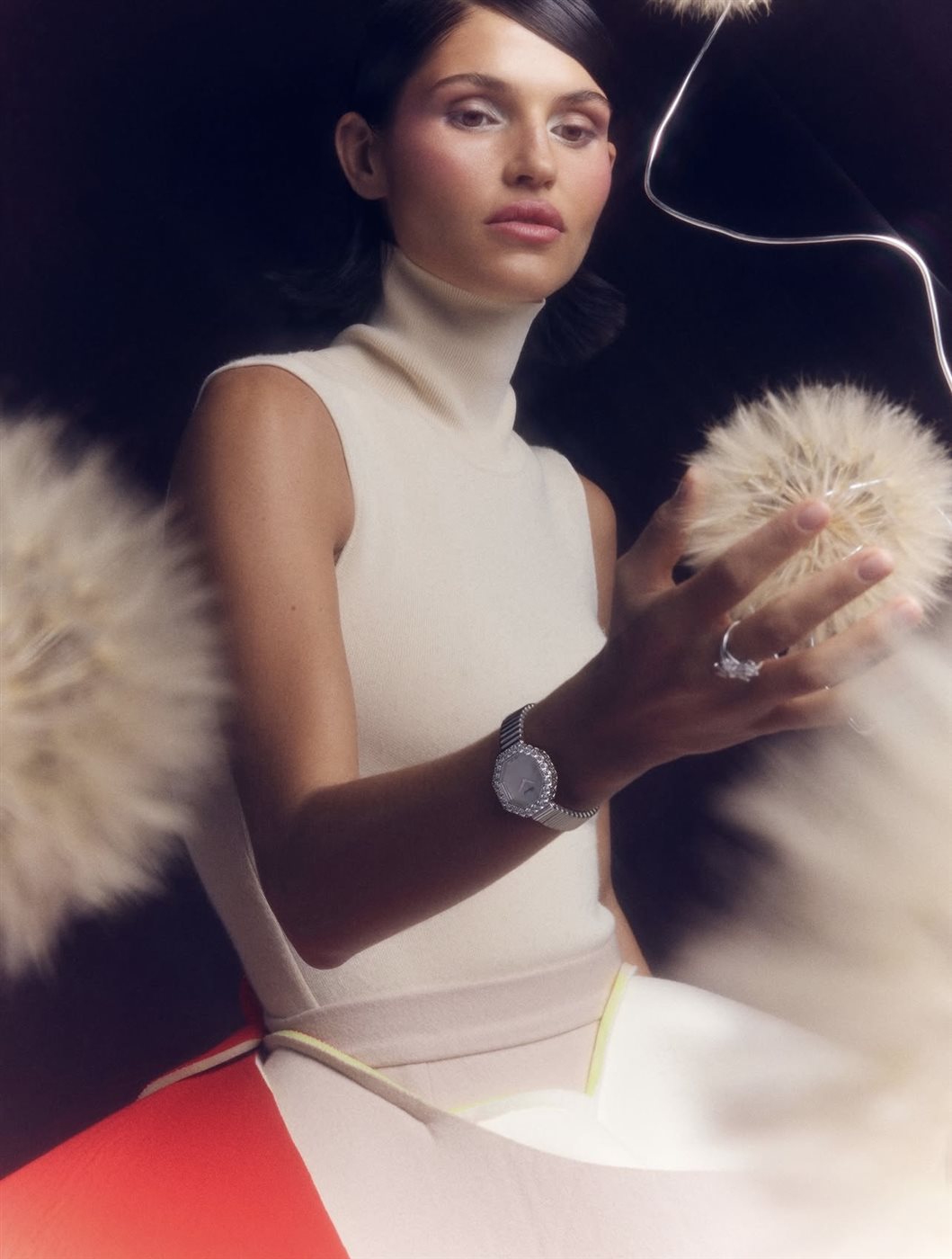 وتستحضر مجموعة L’Heure du Diamant سحر سبعينيات القرن الماضي، وهي مرحلة شكّلت علامة فارقة في تاريخ التصميم الجريء والفخم. فقد استلهمت شوبارد تفاصيل هذه المجموعة من أيقونتها الشهيرة لعام 1970، لتعيد صياغة الرموز الجمالية لتلك الحقبة بأسلوب متجدد. ويبرز ذلك بوضوح في التوازن المدروس بين الميناء المزدان بالأحجار الكريمة والسوار الذهبي المنحوت، حيث يبدو التصميم كقطعة مجوهرات متكاملة أكثر منه مجرد ساعة يد.