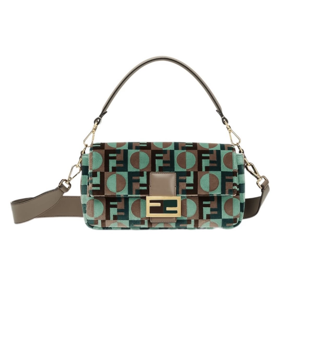 وجاءت التصاميم مصنوعة من قماش بنقشة نسيجية مميّزة بنمط «Fendi Dots»، وهو ابتكار بصري يجمع بين شعار الدار الشهير (FF) ونقاط البولكا المرحة، في توليفة مستوحاة من فن «الآرت ديكو». هذا الأسلوب يعكس روح العشرينيات والثلاثينيات، ويمنح القطع لمسة فنية راقية توازن بين الكلاسيكية والحداثة، وهي ثنائية لطالما برعت فندي في تقديمها.