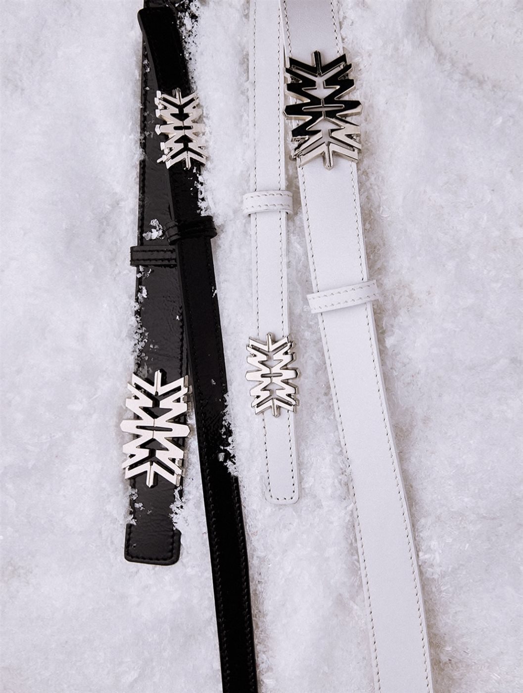 ولا تكتمل مجموعة Holiday 2025 دون الأحزمة الجلدية التي تظهر باللونين الأسود والأبيض، مزينة بالمشبك المعدني الأيقوني. صُممت هذه الأحزمة لتؤطر القوام وتمنح الإطلالة توازنًا أنيقًا، سواء تم تنسيقها مع فساتين السهرة أو الإطلالات الكلاسيكية الراقية. هنا، يتحوّل الإكسسوار إلى “بيان أناقة” بحد ذاته، يرفع من مستوى الإطلالة ويمنحها طابعًا عصريًا راقيًا.