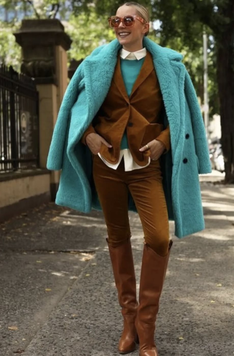 ويُعد هذا الثنائي مثالياً لمختلف الفصول، ففي الصيف والربيع يبرز التركواز كعنصر أساسي يمنح الإطلالة إشراقة واضحة، بينما يعمل البني كقاعدة متوازنة سواء في الأحذية أو الحقائب أو الإكسسوارات. أما في الخريف والشتاء، فتتقدّم الدرجات البنية الداكنة في المعاطف والسترات، مع لمسات تركوازية ناعمة في الأوشحة أو القطع الداخلية، ما يخلق تبايناً أنيقاً بعيداً عن الرتابة اللونية المعتادة.