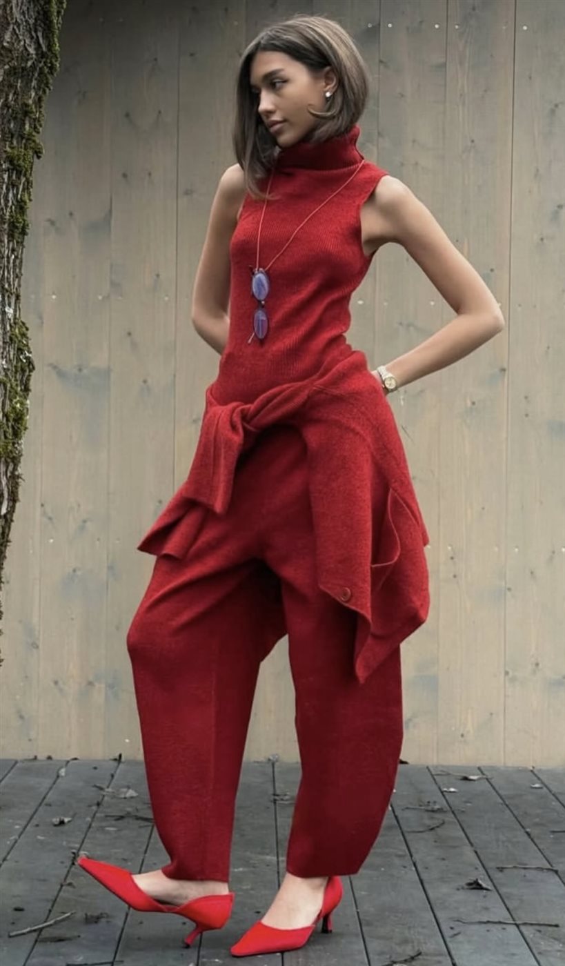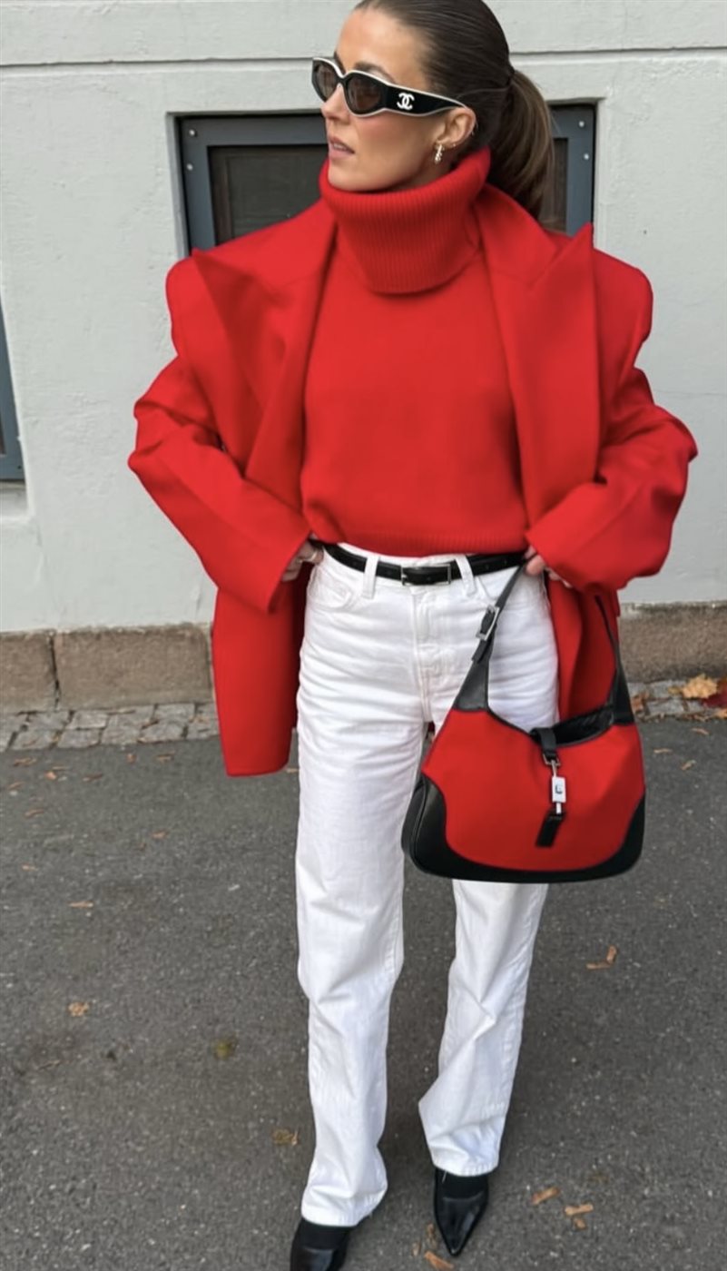 لمن تفضّل الإطلالات الجريئة، يمكن اعتماد الأحمر بأسلوب كامل عبر بدلة رسمية، فستان سهرة، أو معطف طويل مع حذاء وحقيبة باللون نفسه، مع الحفاظ على بساطة القصّات لتفادي المبالغة. أما لعاشقات الأناقة الهادئة، فيمكن إدخال الأحمر كلمسة قوية عبر حقيبة، حذاء، أو معطف يضفي حيوية على إطلالة محايدة بالأبيض، الأسود، أو البيج.