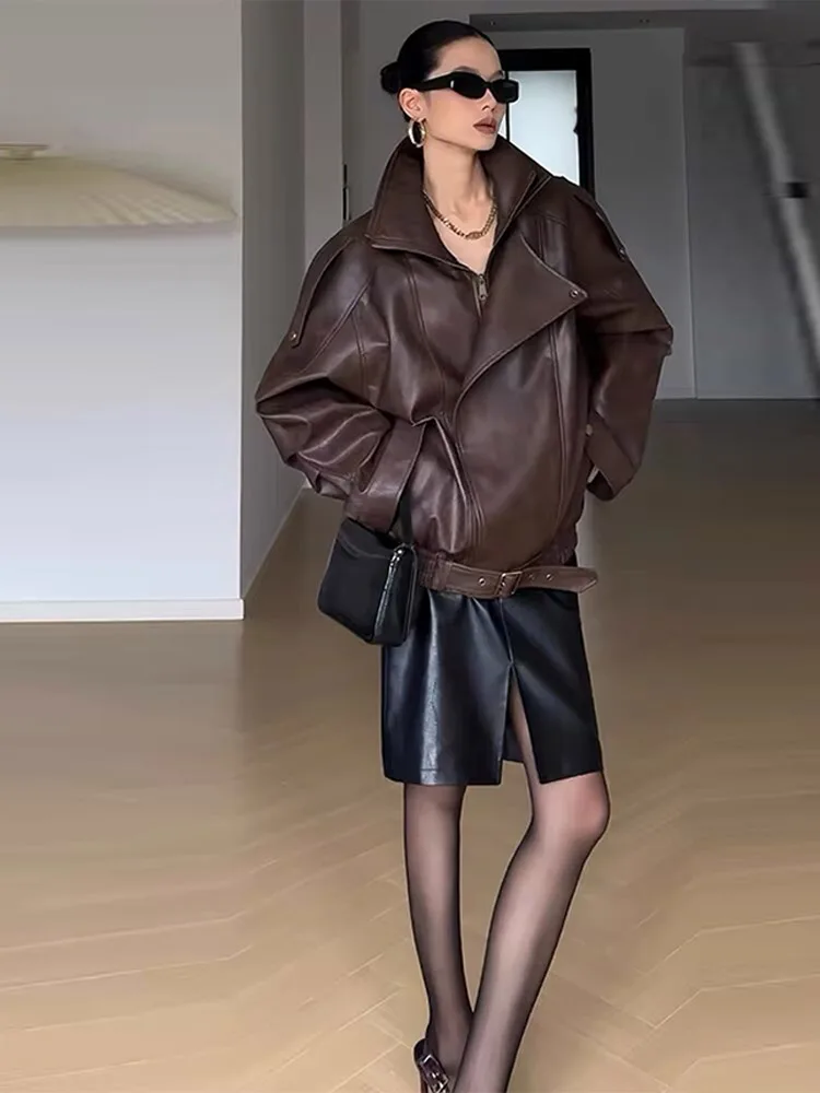 البني يفرض حضوره Brown leather jacket قطعة خالدة تعود بقوة إلى واجهة الموضة