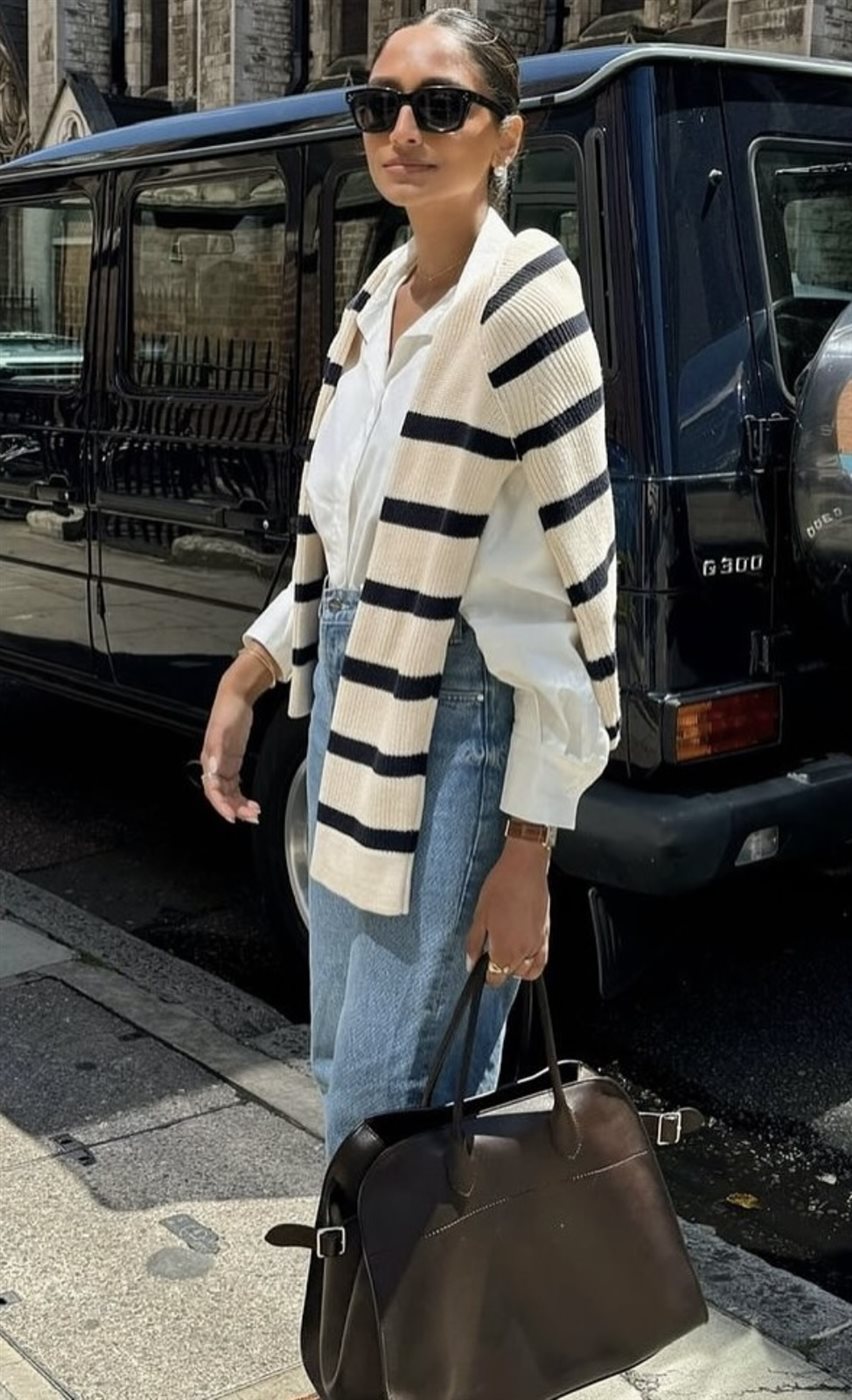 السترة الموضوعة على الكتفين تمنح مظهرًا عفويًا أنيقًا في آن واحد، فهي توحي بالاستعداد لأي تغيّر في درجات الحرارة من دون أن تفقد الإطلالة خفّتها أو انسيابيتها. ومع تبدّل الطقس بين البرودة والدفء خلال اليوم الواحد، أصبحت هذه الطريقة في التنسيق خيارًا مثاليًا للمرأة التي تبحث عن الأناقة العملية، سواء في إطلالاتها اليومية أو خلال تنقّلاتها بين العمل والمناسبات غير الرسمية.