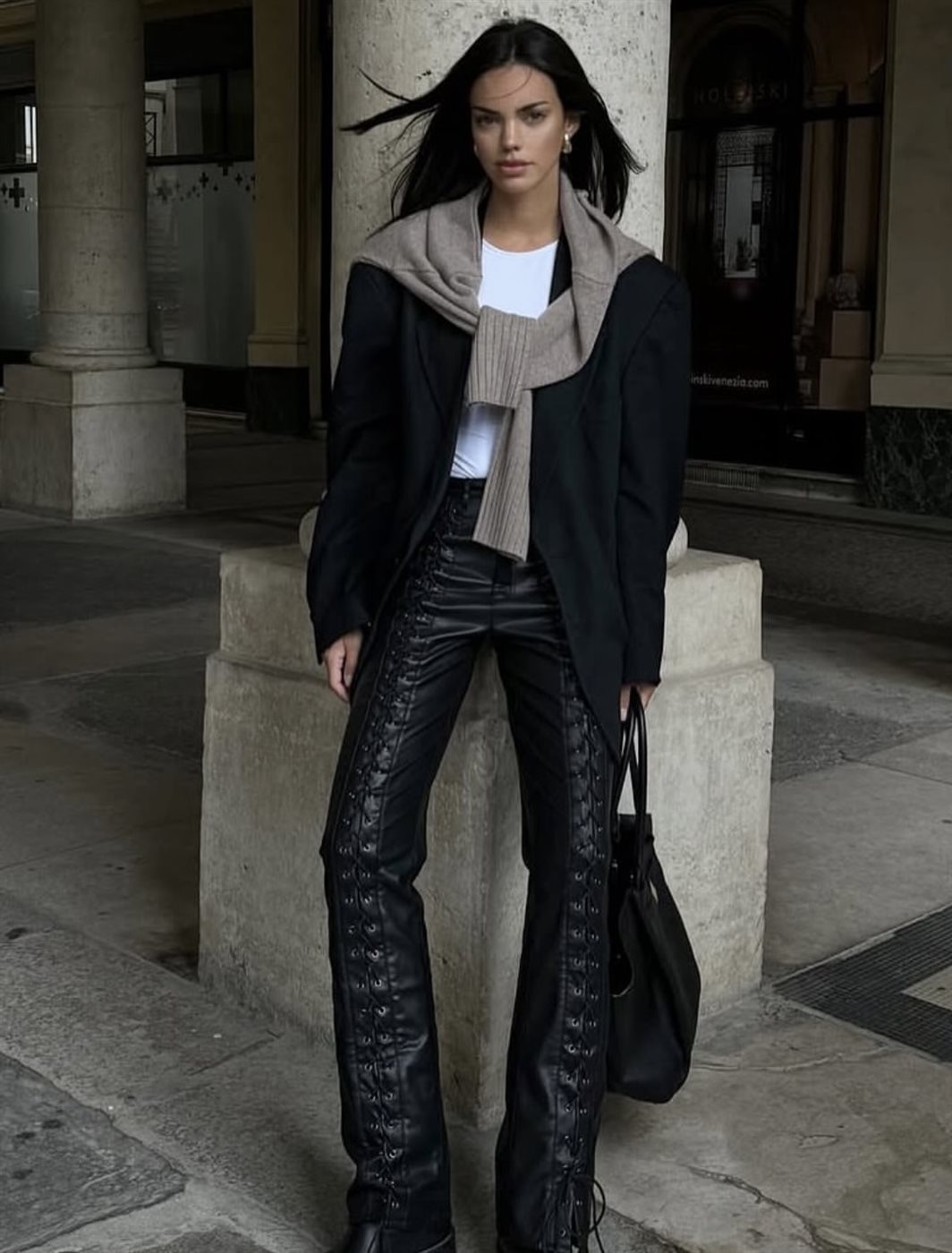 ومن الناحية العملية، تسهم هذه الصيحة في إبراز توازن بصري جميل، إذ تكسر رتابة الإطلالة وتضيف طبقة خفيفة تمنحها عمقًا وأناقة. كما أنها تعكس أسلوبًا مستوحى من إطلالات الشارع العالمية، حيث أصبحت السترة على الكتفين علامة على العفوية المدروسة والذوق غير المتكلّف.