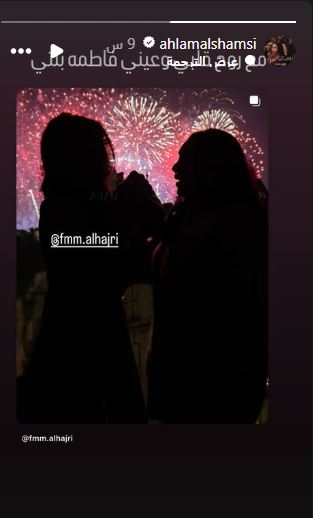 أما أحلام فقررت بدء العام الجديد مع ابنتها فاطمة، والتي شاركت ستوري لها عبر “إنستجرام” رفقة ابنتها أمام احتفالات العام الجديد 2026.