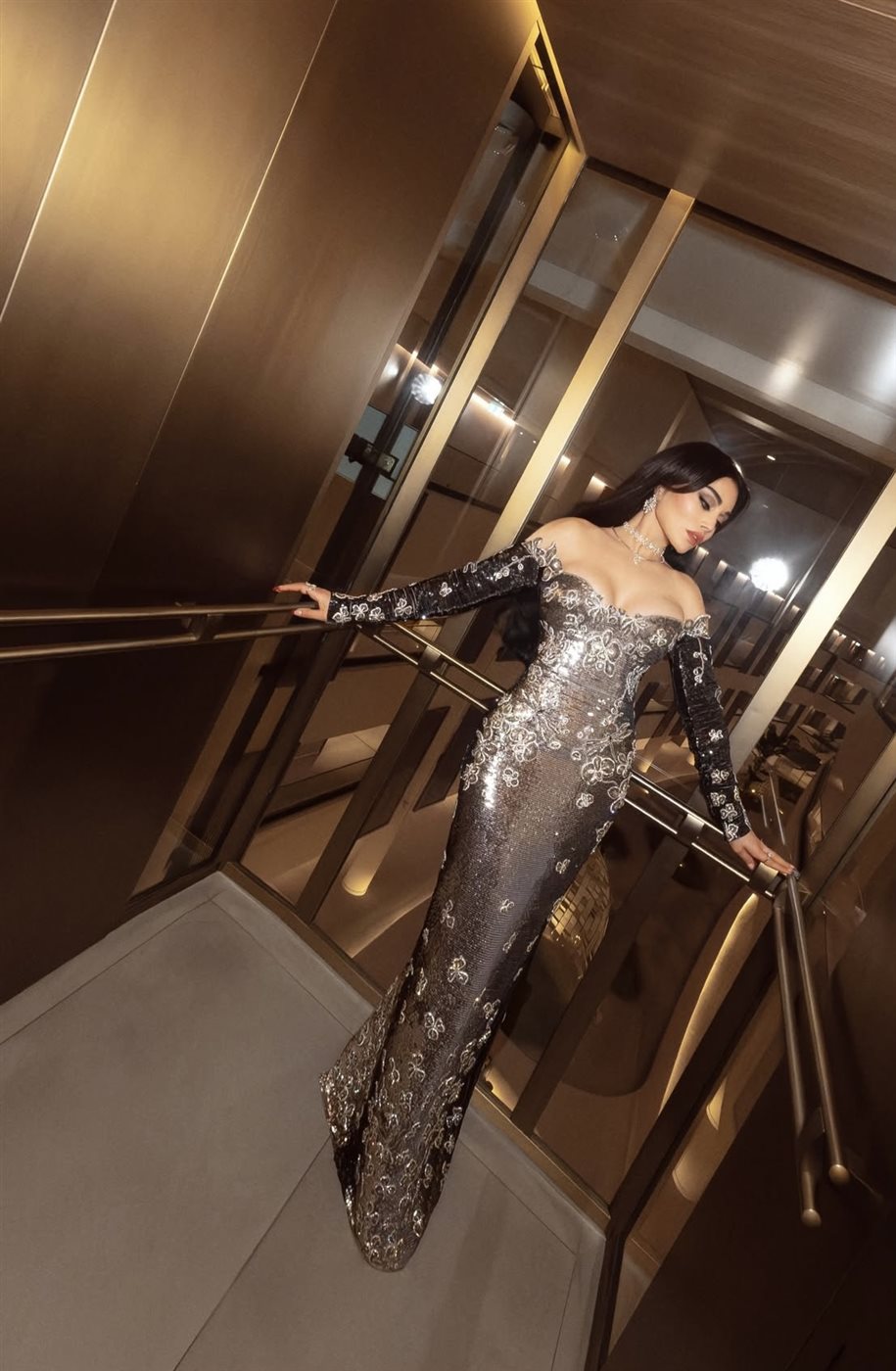 الأكمام الطويلة المزيّنة بالتطريز اللامع أضافت بعدًا دراميًا راقيًا، وجعلت الفستان قطعة متكاملة تجمع بين الكلاسيكية والعصرية. أما اختيار الحذاء فجاء متناغمًا مع الإطلالة، إذ اعتمدت هيفاء حذاءً مدببًا بلون داكن ليوازن لمعان الفستان دون أن ينافسه.