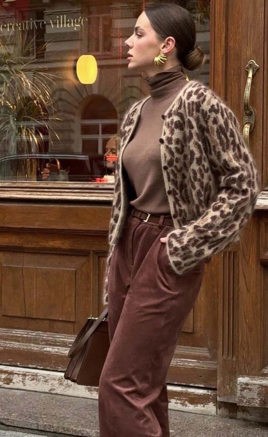 ويتميّز الكارديجان القصير بقصّته التي تنتهي عند الخصر أو أعلى قليلًا، ما يجعله مثاليًا لخلق توازن بصري مع القطع عالية الخصر، مثل السراويل الجينز أو التنانير الميدي. هذه القصّة لا تمنح الإطلالة لمسة شبابية فحسب، بل تساعد أيضًا على إبراز القوام بطريقة أنيقة وغير مبالغ فيها. وإلى جانب الجانب الجمالي، يثبت الكارديجان القصير فعاليته العملية، إذ يمكن ارتداؤه فوق قمصان خفيفة أو توبات صوفية، ثم خلعه بسهولة عند الانتقال من الأجواء الباردة إلى الدافئة.