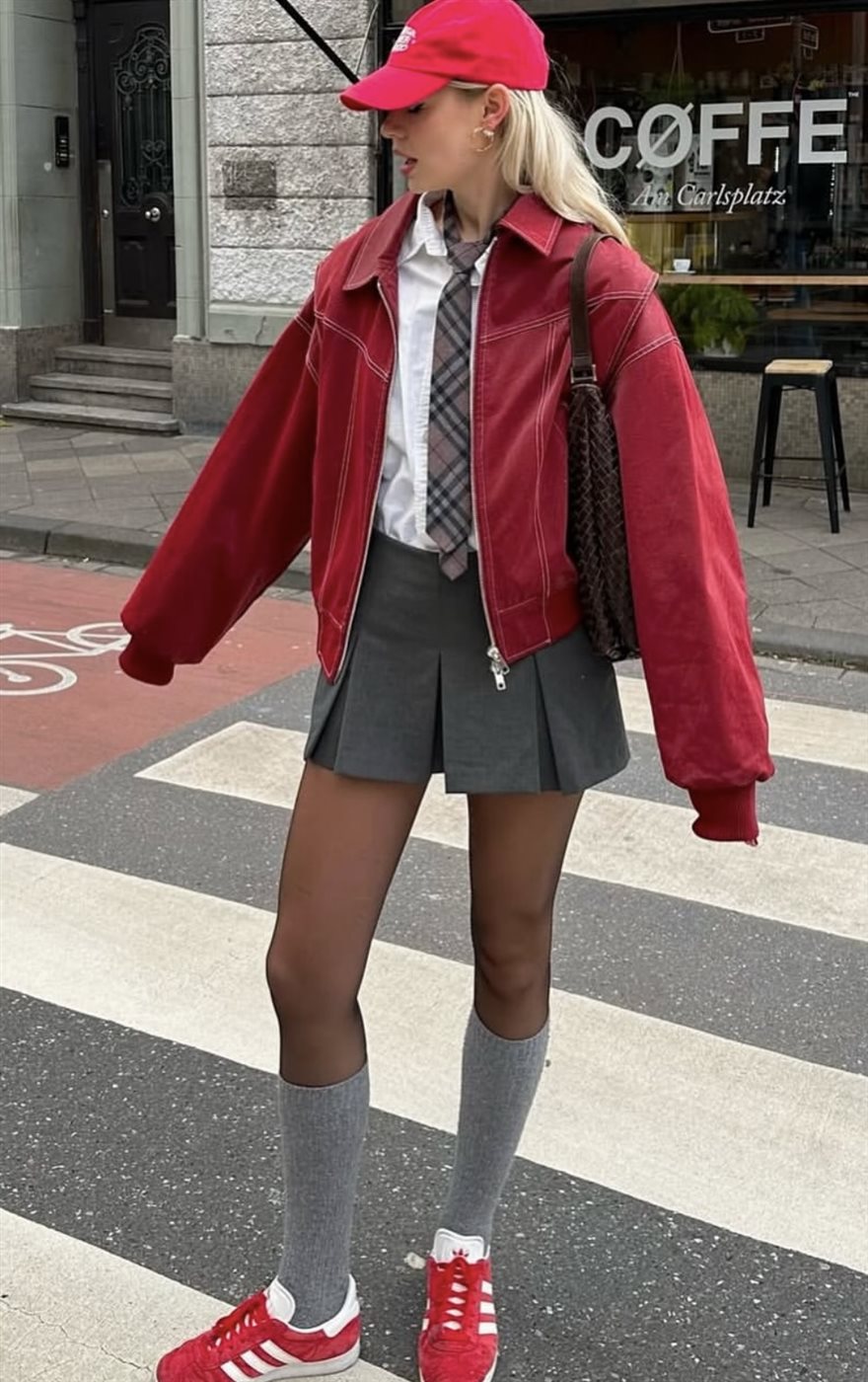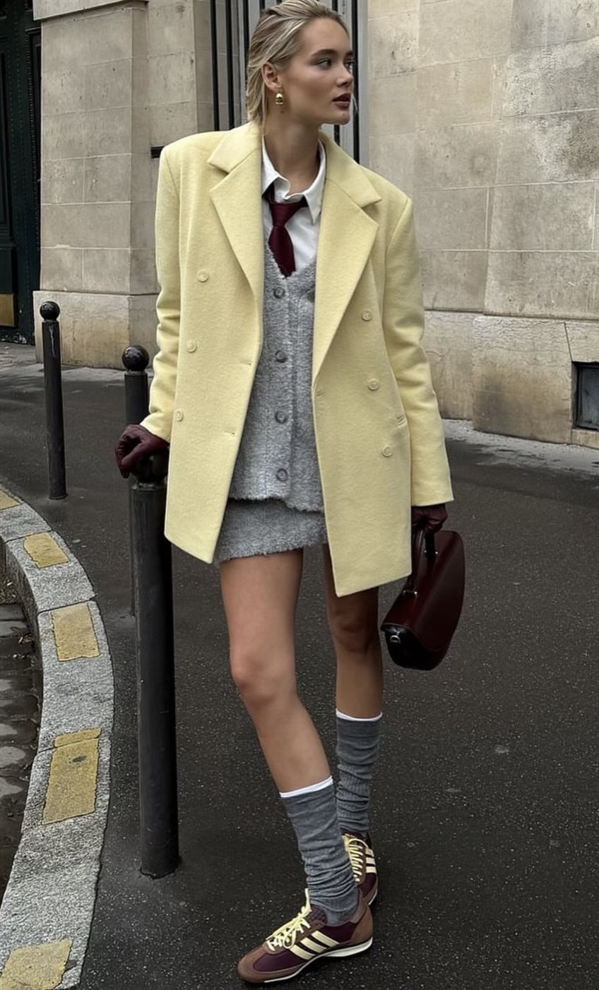 في إطلالات الشارع، ظهر الـPreppy هذا الموسم بأسلوب أكثر تحررًا من قواعده التقليدية. لم يعد مقتصرًا على التنسيق الكلاسيكي الصارم، بل دخلت عليه عناصر عصرية مثل الأحذية الرياضية البيضاء بدل اللوفر الكلاسيكي، والجوارب الظاهرة، وحتى تنسيق القمصان مع كنزات صوفية واسعة لإضفاء طابع شبابي غير متكلّف. هذا التحديث جعل الإطلالة أقرب إلى الحياة اليومية وأسهل في التطبيق.