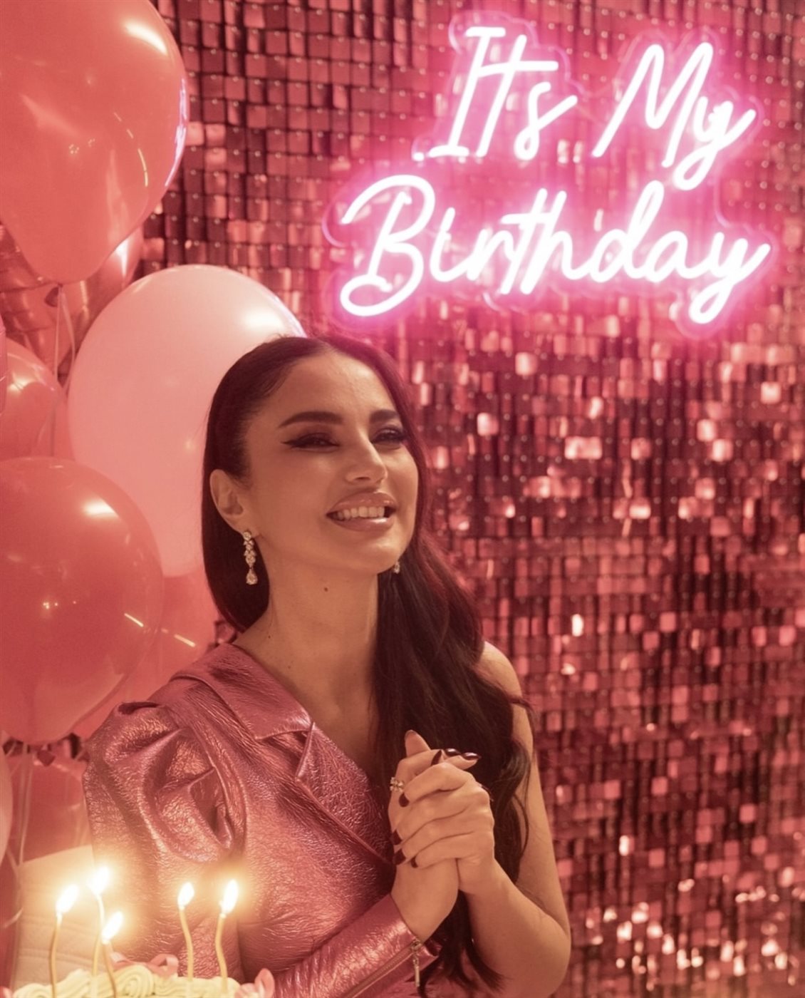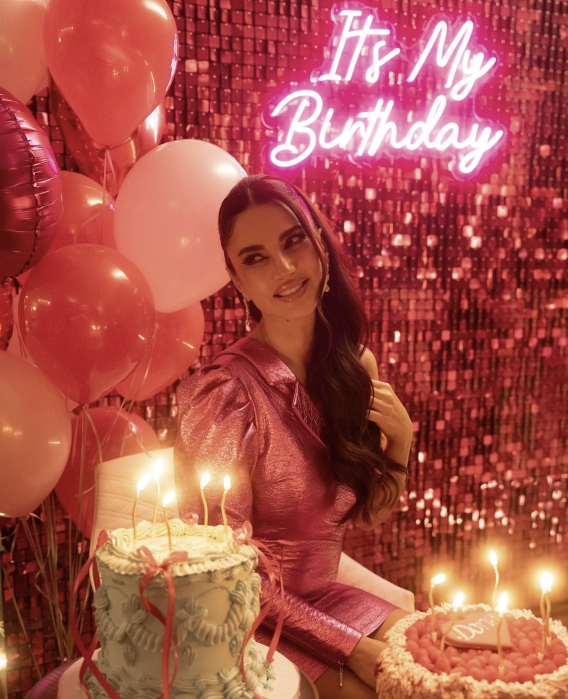 درة زروق تحتفل بعيد ميلادها باطلالة وردية براقة وبرسالة عميقة