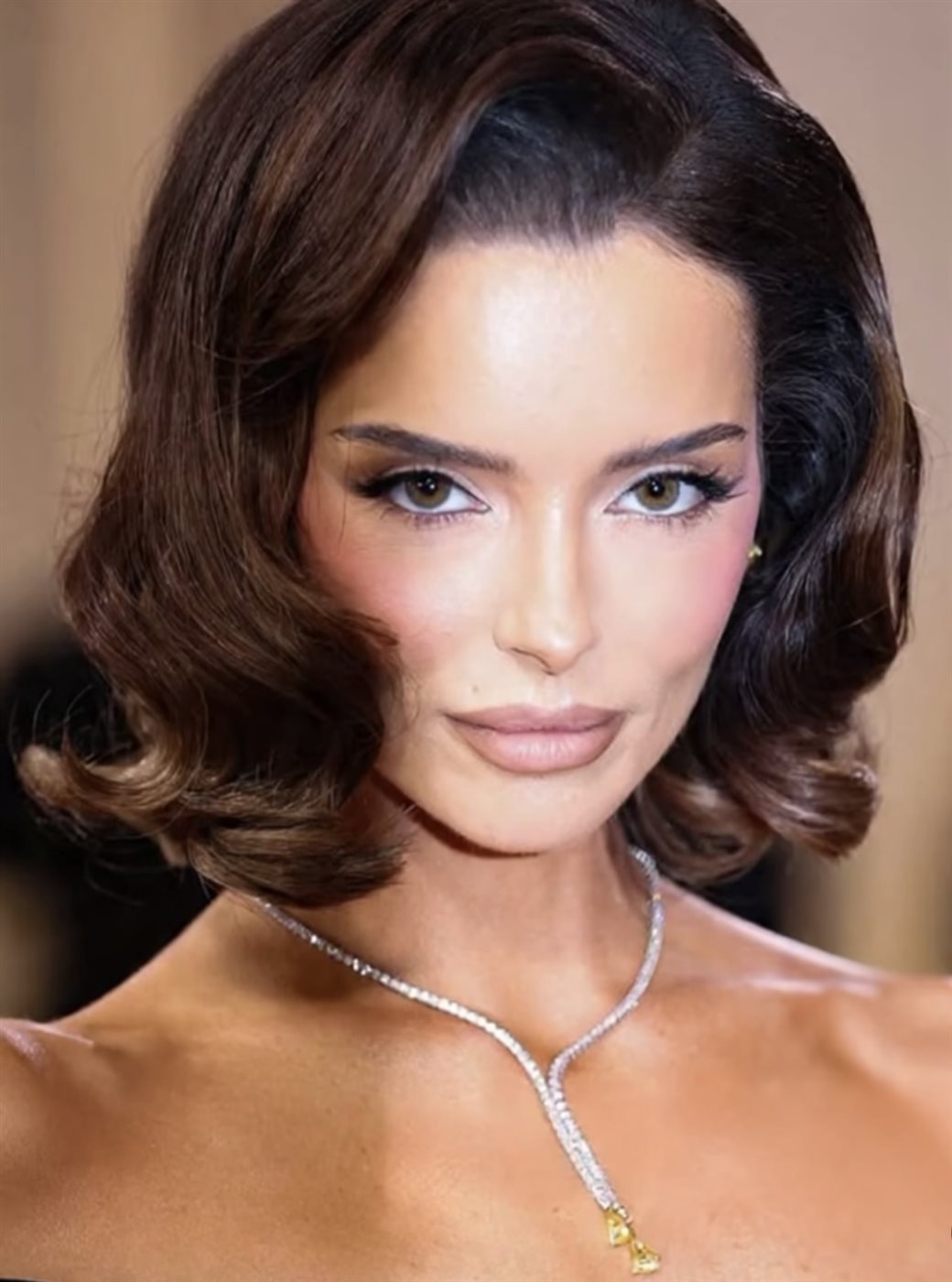 أما مكياج العيون، فجاء متوازنًا بين الكلاسيكية والعصرية؛ إذ حضرت العيون المحددة بخطوط رفيعة من الآيلاينر الأسود أو البني، مع ظلال محايدة تميل إلى درجات البيج والبرونزي، ما أضفى عمقًا ناعمًا على النظرة من دون مبالغة. كما لوحظ استخدام الرموش الطبيعية أو الخفيفة، في انسجام تام مع فلسفة “الجمال الهادئ” التي سيطرت على الأمسية.
