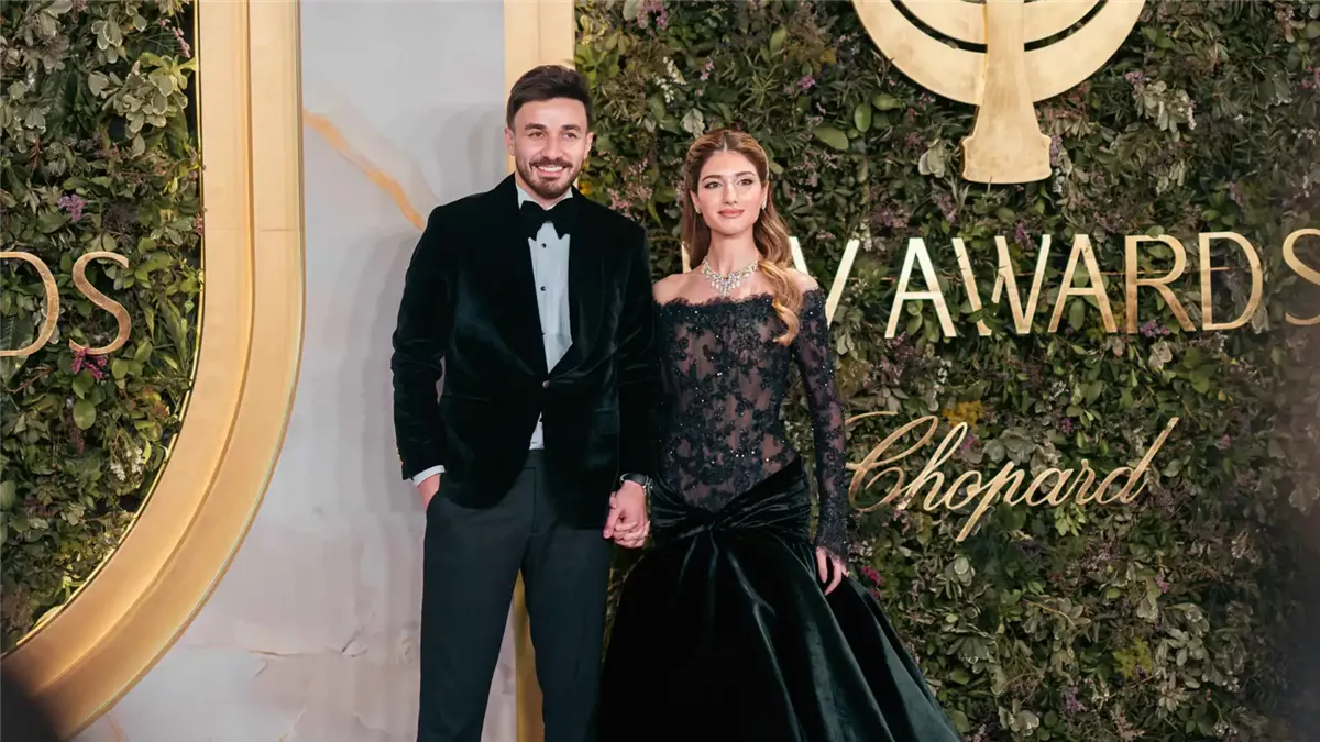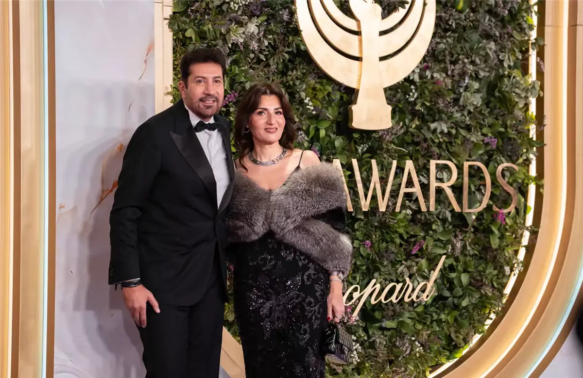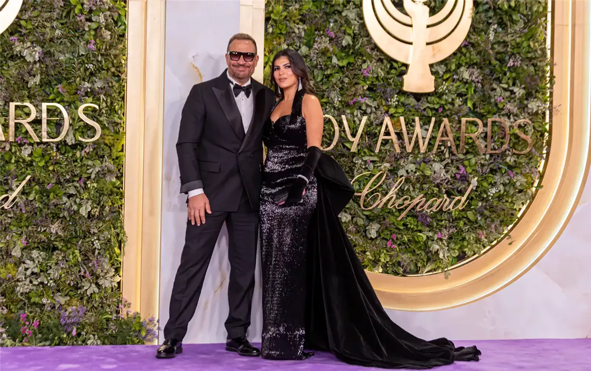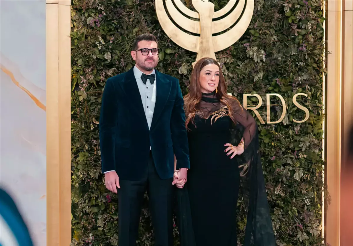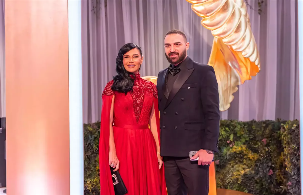 شارك الفنان يزن السيد في الحفل برفقة زوجته لمى الرهونجي التي اختارت فستانا تركوازيا مزينا بلمسات من الفرو الأسود ما منح الثنائي توازنا أنيقا بين الألوان والأناقة.