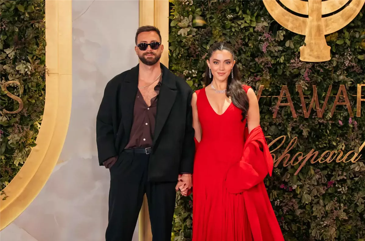 كعادتهما نسق الثنائي وسام فارس وسارة أبي كنعان إطلالاتهما بالألوان العاجية والأسود مع لمسات من التطريز الذهبي مما أضاف لمسة فخامة على حضورهما في الحفل.