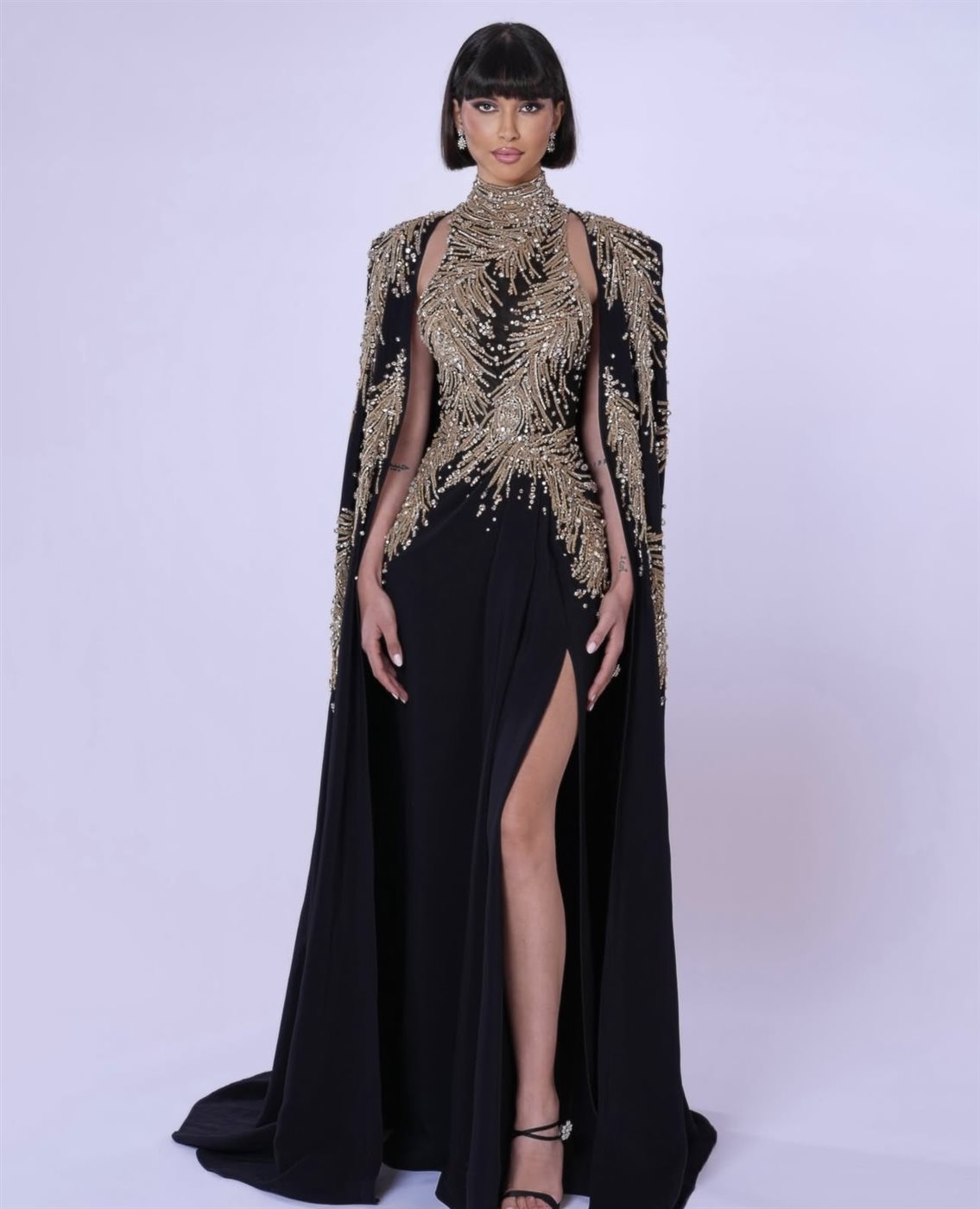 الشق الجانبي في التصميم أضاف لمسة أنثوية جريئة، من دون أن يفقد الفستان هويته الراقية، بينما منحت العباءة المطرزة المرفقة بالفستان بعدًا دراميًا أنيقًا، انسدل بخفة خلف عزة سليمن ليعزز من حضورها القوي أمام عدسات المصورين. هذا التفصيل تحديدًا عكس فلسفة زهير مراد في الجمع بين الفخامة المسرحية والأناقة الراقية التي تليق بالمناسبات الكبرى.