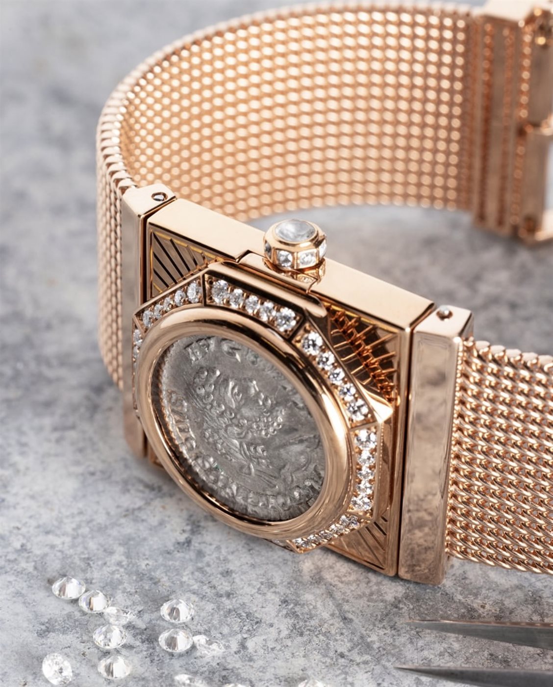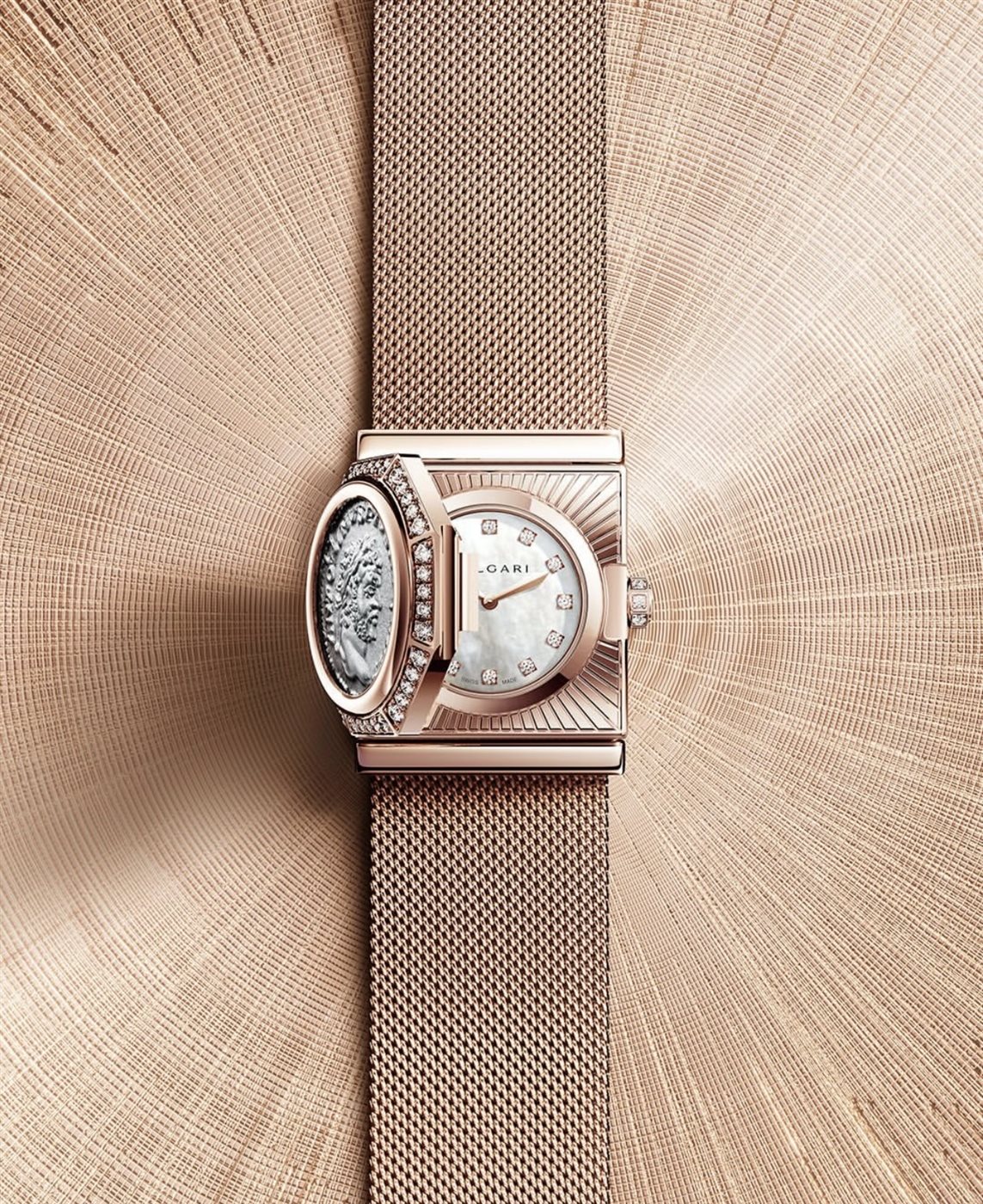 ضمن هذا الإطار، كشفت بولغاري عن ساعة Monete المصنوعة من الذهب الوردي، في تصميم يحمل دلالات واضحة على هوية الدار المستوحاة من التراث الروماني. فالاسم Monete يستحضر العملات القديمة التي لطالما شكّلت مصدر إلهام لبولغاري، ويعيد تقديمها بأسلوب معاصر ينسجم مع ذائقة المرأة الحديثة. ويأتي السوار الشبكي بأسلوب ميلانو ليضفي على الساعة طابعاً أنيقاً ومرناً، مستلهماً الحِرَفية الإيطالية التي تشتهر بها المدينة، ومؤكداً العلاقة الوثيقة بين التصميم والمكان.