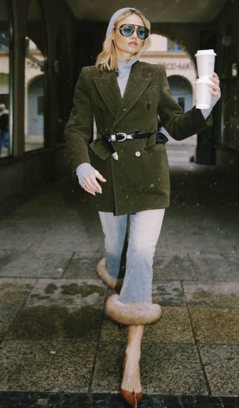 وكذلك لم يغب بليزر الصوف عن إطلالات النجمات، بل كان حاضراً بقوة في اختياراتهن اليومية وعلى السجادة الحمراء بأساليب مبتكرة. تألقت به نجمات عالميات في إطلالات تجمع بين البساطة والفخامة، حيث اعتمدته بعضهن بأسلوب واسع مع أحذية مسطحة لإطلالة كاجوال راقية، فيما اختارته أخريات بتنسيق أكثر أنوثة مع أحذية بكعب عالٍ وإكسسوارات بارزة. هذا التنوع في الأسلوب يعكس مرونة القطعة وقدرتها على التكيف مع شخصيات مختلفة.