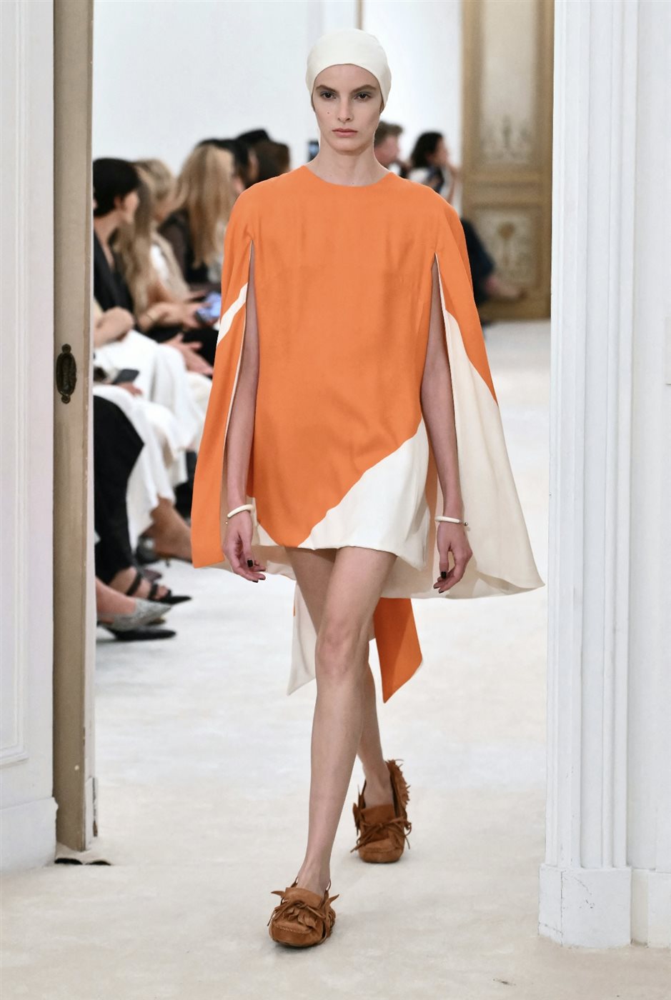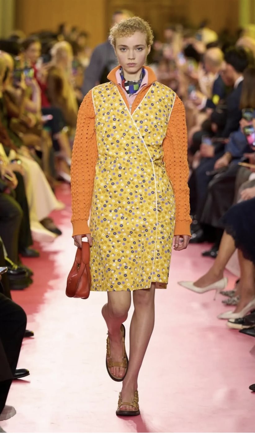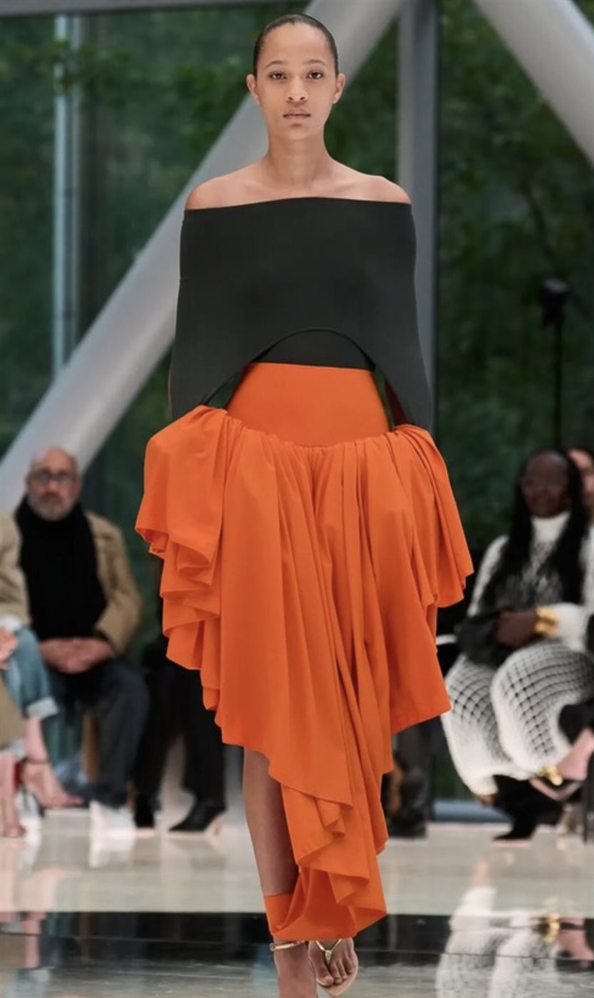وفي عروض ربيع وصيف 2026، ظهرت استخدامات أكثر نضجًا ووضوحًا للبرتقالي، حيث لم يعد مقتصرًا على اللمسات الجريئة أو القطع اللافتة فقط، بل دخل بقوة في الإطلالات الكاملة. رأينا درجات متعددة منه، من البرتقالي المحروق والمائل إلى البني، وصولًا إلى الدرجات الناعمة القريبة من المشمشي، ما جعله لونًا مناسبًا لمختلف الأذواق وأنماط الأناقة.