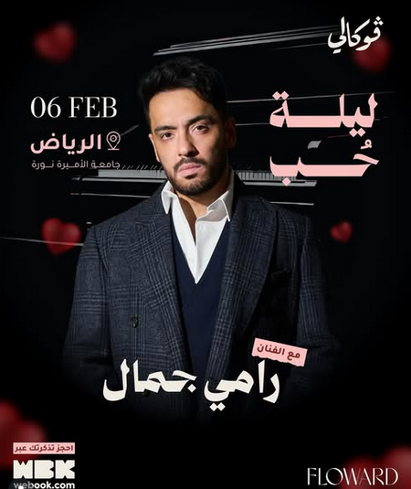 ويعد هذا الحفل الأول للفنان رامي جمال الذي يشارك فيه ضمن فعاليات ڤوكالي في الرياض، وقد بدأ تحضيراته وفتح باب الحجز للجمهور، ومن المتوقع أن يقدم رامي باقة مميزة من أغانيه القديمة والجديدة التي تجمع بين الشجن والمقسوم والرومانسية في أمسية مليئة بالمفاجآت تقام تحت شعار "ليلة حب".