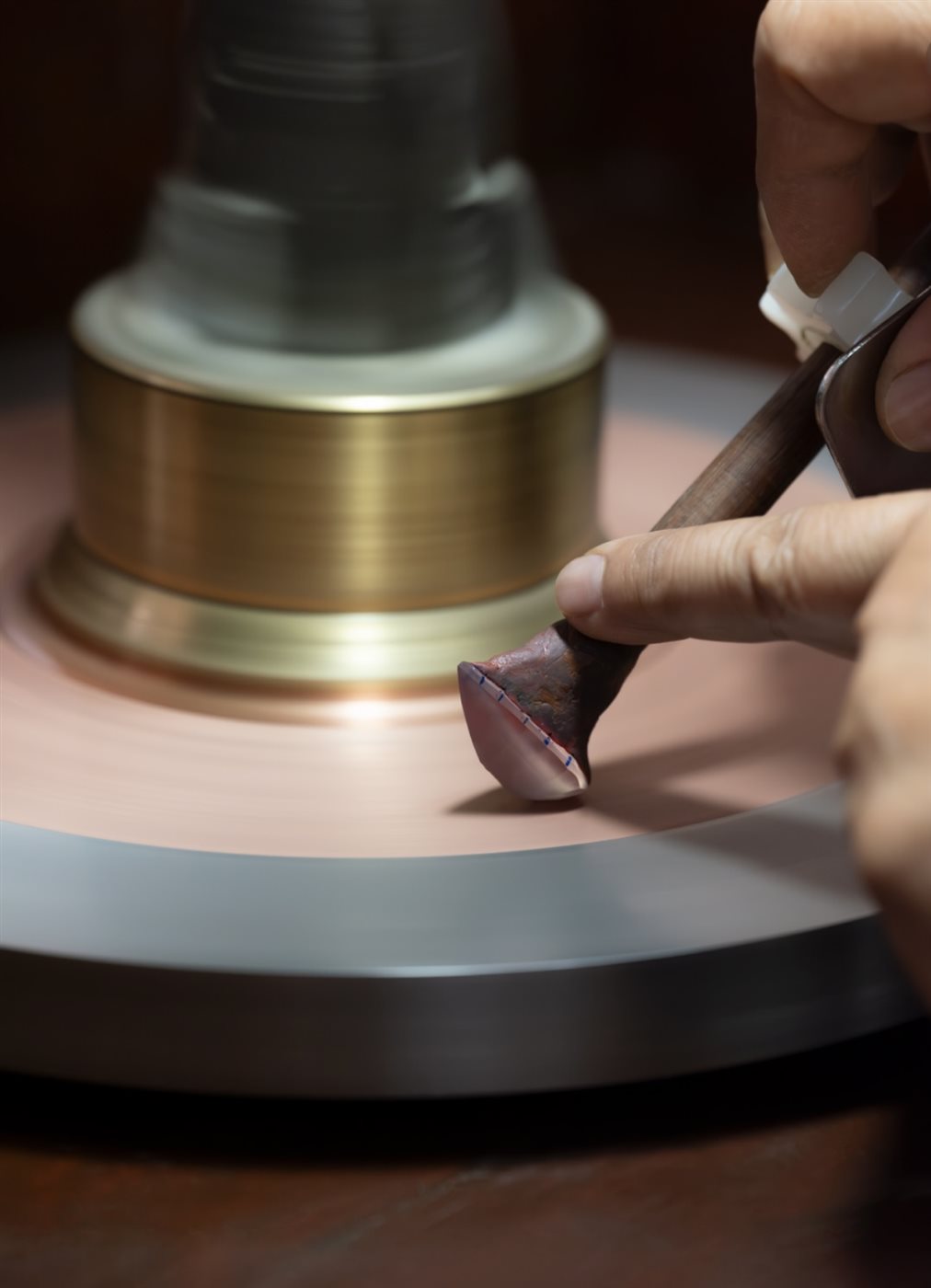 وقد اختارت برادا حجر المورغانيت تحديدًا لما يتمتع به من لون وردي عتيق يحمل طابعًا ناعمًا وأنيقًا، بعيدًا عن الصخب اللوني. هذا اللون، الذي يستحضر إحساسًا بالزمن والذاكرة، لم يخضع لأي معالجة أو تحسين، في قرار يعكس احترام الدار للطبيعة وللجمال الأصيل. فالمورغانيت في هذه المجموعة يُترك على حاله، ليعبّر عن بريقه الطبيعي من دون تدخل، وكأن برادا تؤكد أن الفخامة الحقيقية لا تحتاج إلى مبالغة.