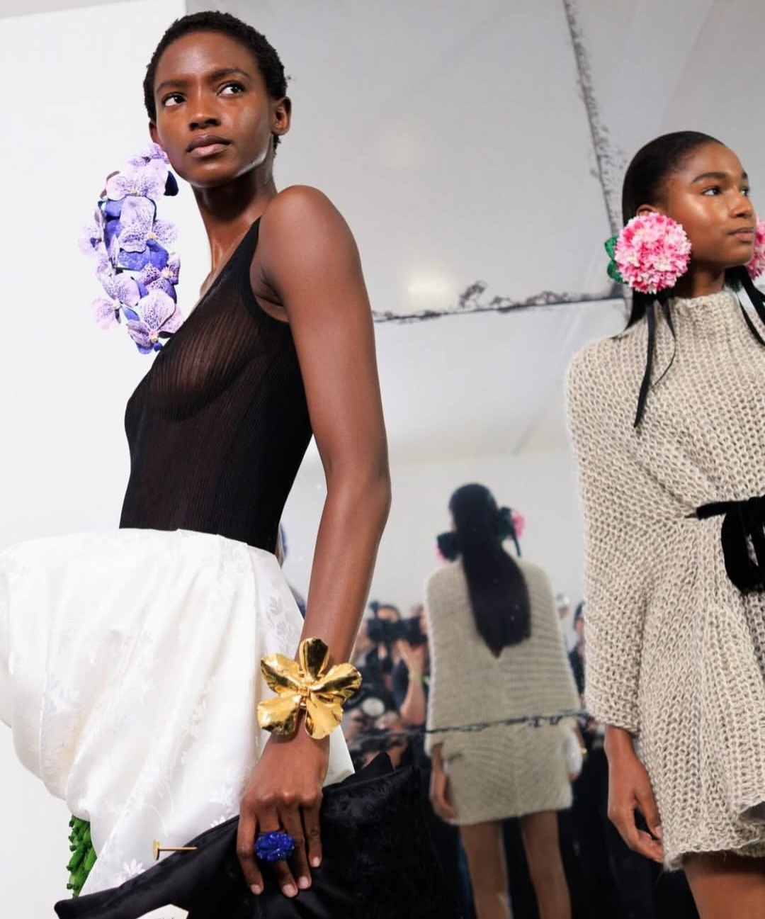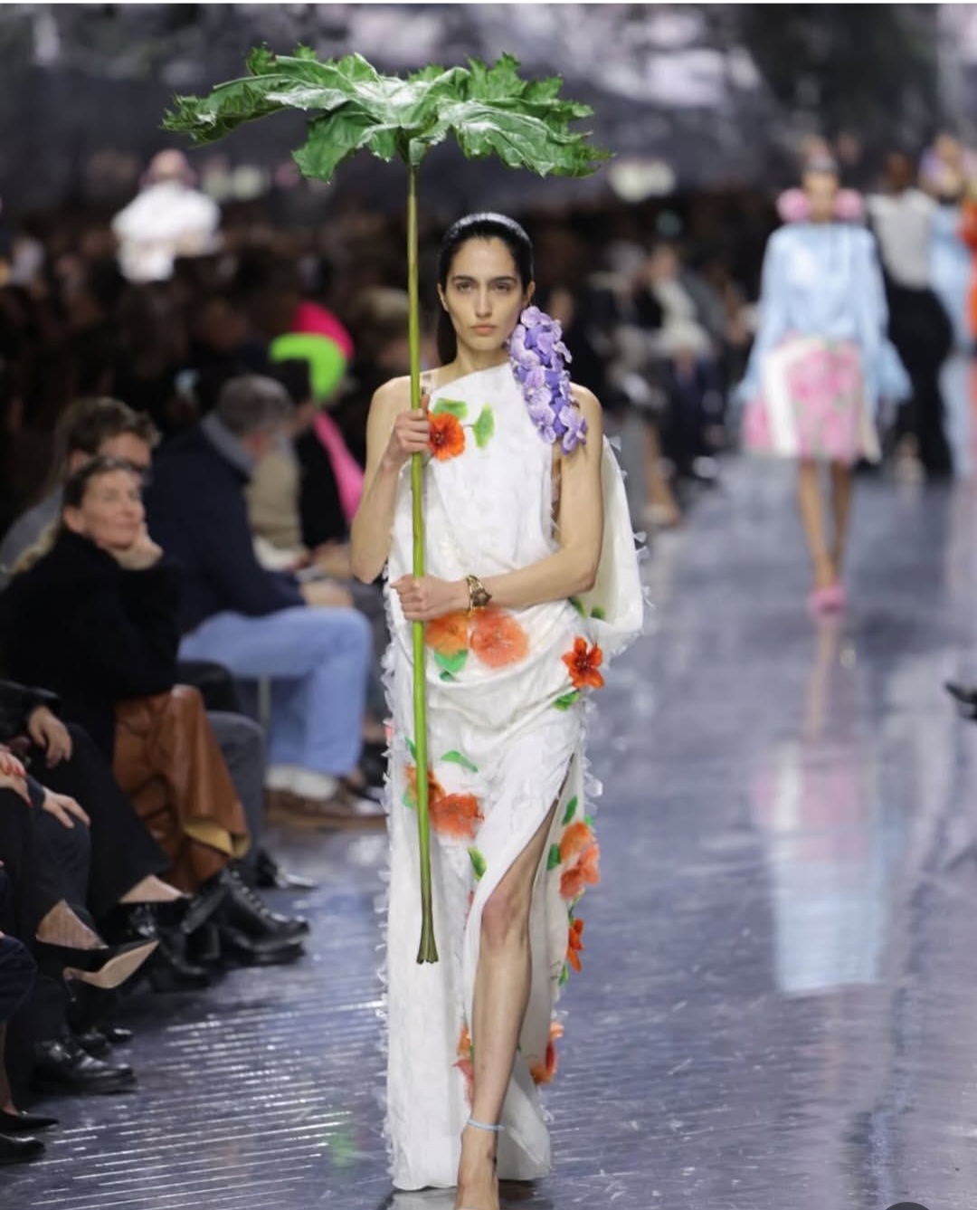 تميزت المجموعة بتوازن دقيق ومدروس بين الأحجام الضخمة والقصات الانسيابية. رأينا فساتين تحاكي الطبيعة في نموها وتفتحها، حيث برزت الألوان الحيوية مثل الأخضر العشبي الصارخ، والأرجواني الهادئ، والبرتقالي الدافئ، بجانب الأسود الملكي الذي منح العرض ثقلاً وفخامة كلاسيكية.