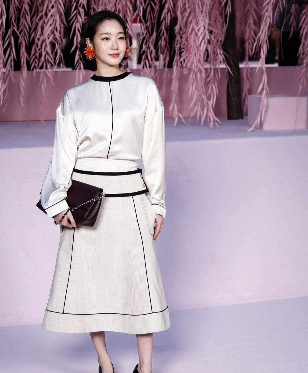 ومن الشرق الأقصى، حضرت الممثلة الكورية الجنوبية الشهيرة كيم غو-إيون، التي أضفت طابعاً من النعومة والرقة على الحدث. كيم اختارت إطلالة بيضاء بالكامل، تميزت بالبساطة المتناهية والخطوط الانسيابية، مما عكس التنوع الكبير الذي تحرص عليه دار شانيل في استقطاب أذواق مختلفة من كافة أنحاء العالم.