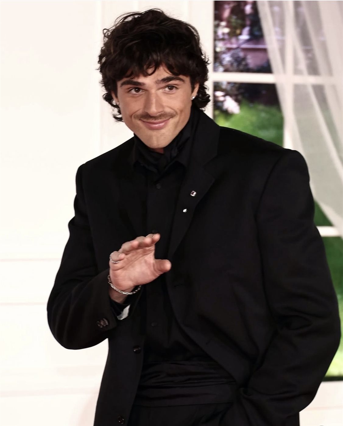 في المقابل، ظهر بطل العمل جاكوب إلوردي بإطلالة أنيقة وبسيطة، مرتدياً بدلة سوداء من Bottega Veneta، جاءت خالية من التكلّف، لكنها محمّلة برفاهية صامتة تنسجم مع طابع Brontë-core الذكوري. اللمسة الكلاسيكية الهادئة عكست توازناً مثالياً بين الأناقة المعاصرة والروح الأدبية التي يستلهمها الفيلم.