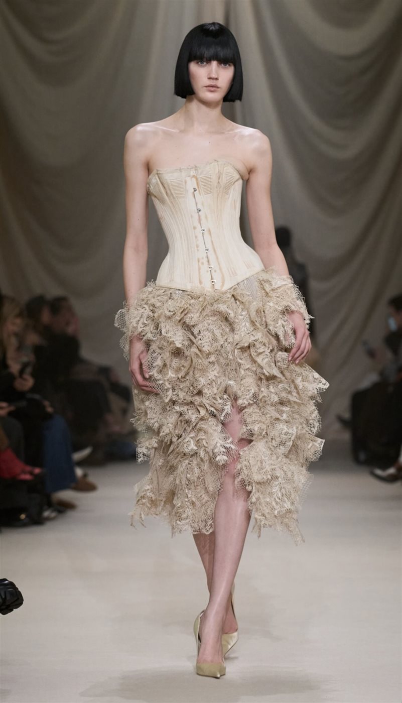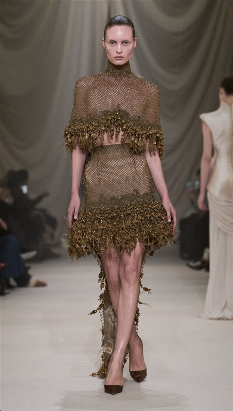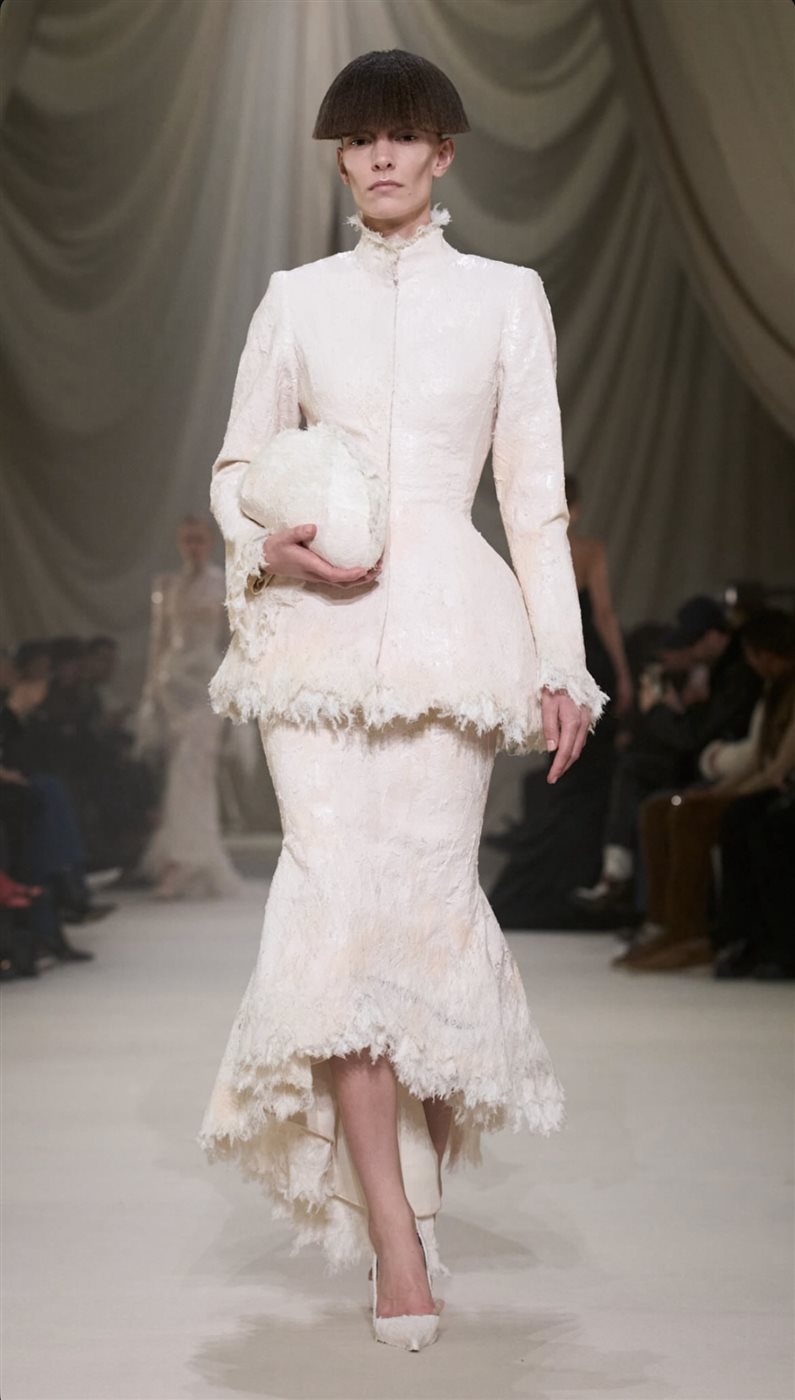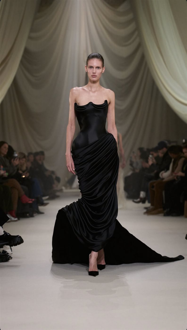 الحِرفية العالية كانت حاضرة بقوة، من خلال تفاصيل دقيقة، تطريزات محسوبة، واستخدام ذكي للخامات، عكس احترام الدار لتقاليد الهوت كوتور، وفي الوقت نفسه رغبتها في إعادة تفسيرها بروح معاصرة. الأقمشة بدت وكأنها جزء من الفكرة، لا مجرد وسيلة لتنفيذها، حيث ساهمت في إبراز البنية والتشكيل، ومنحت القطع بعداً فنياً واضحاً.