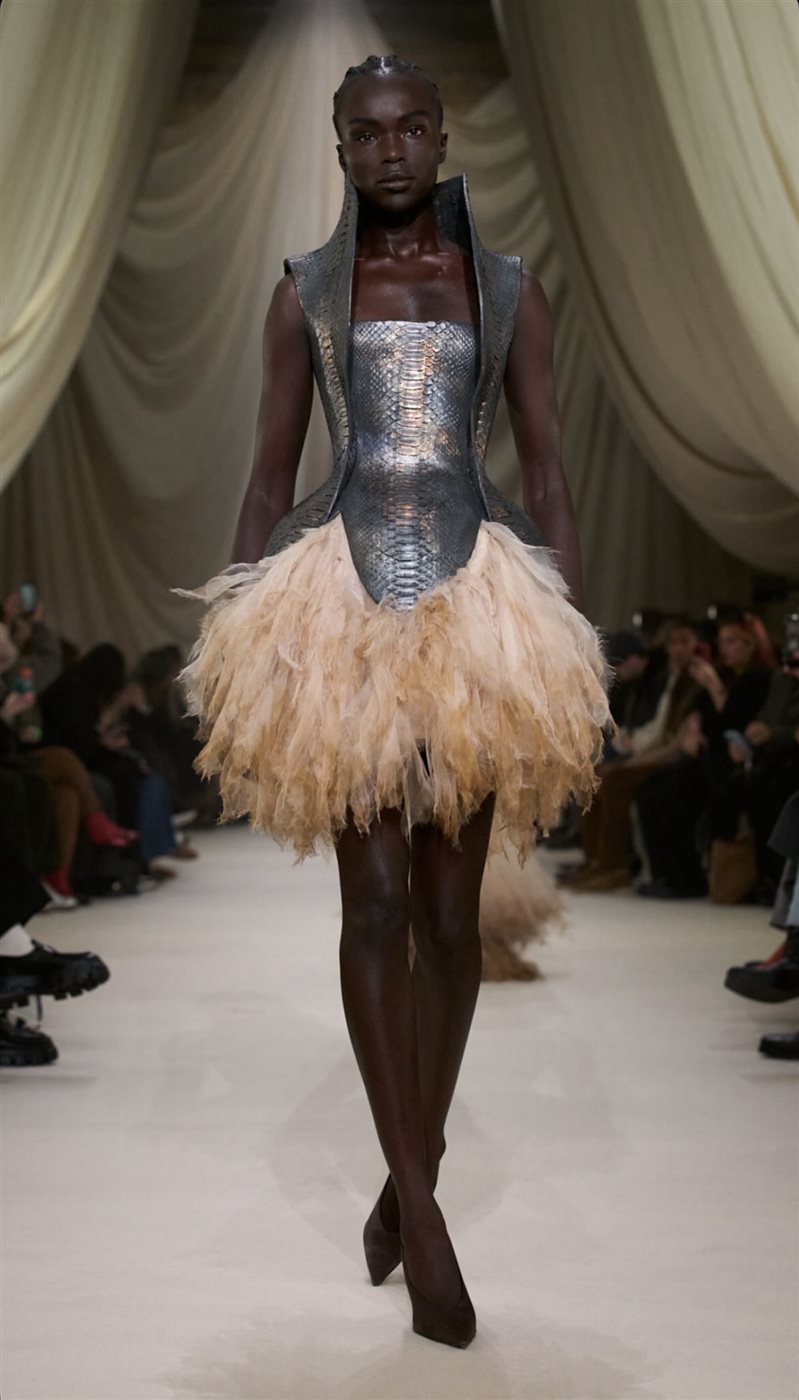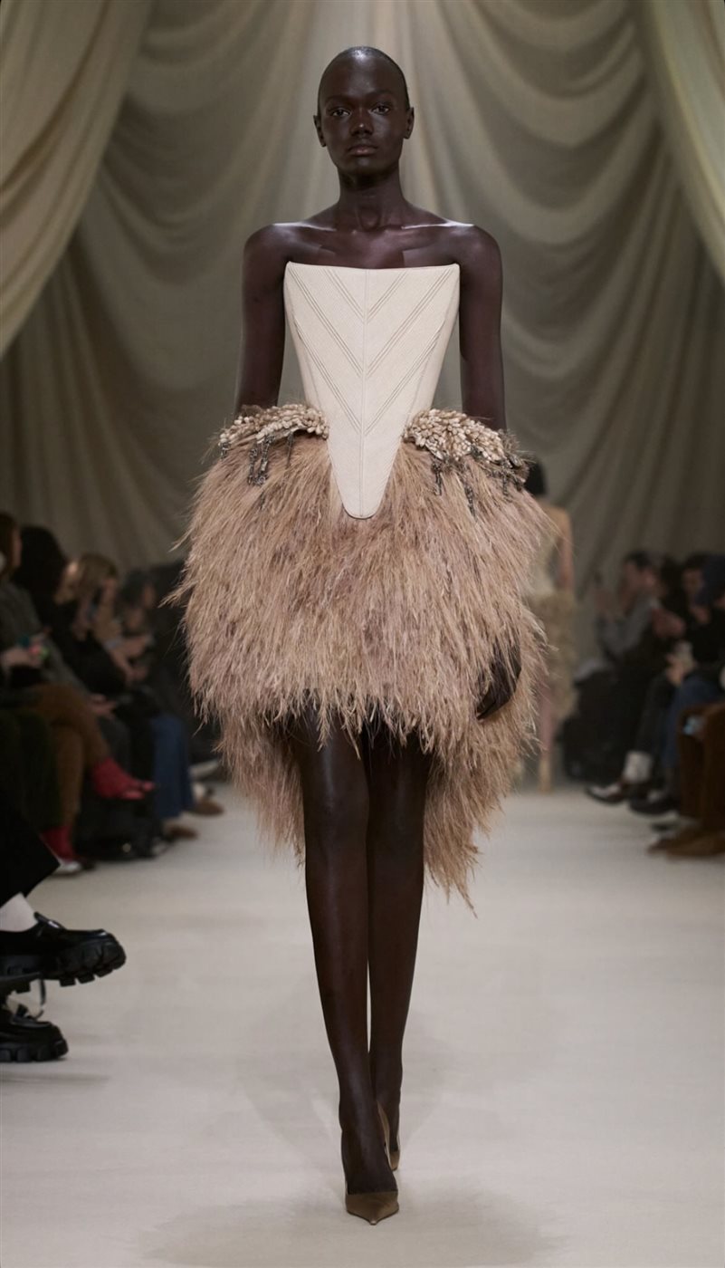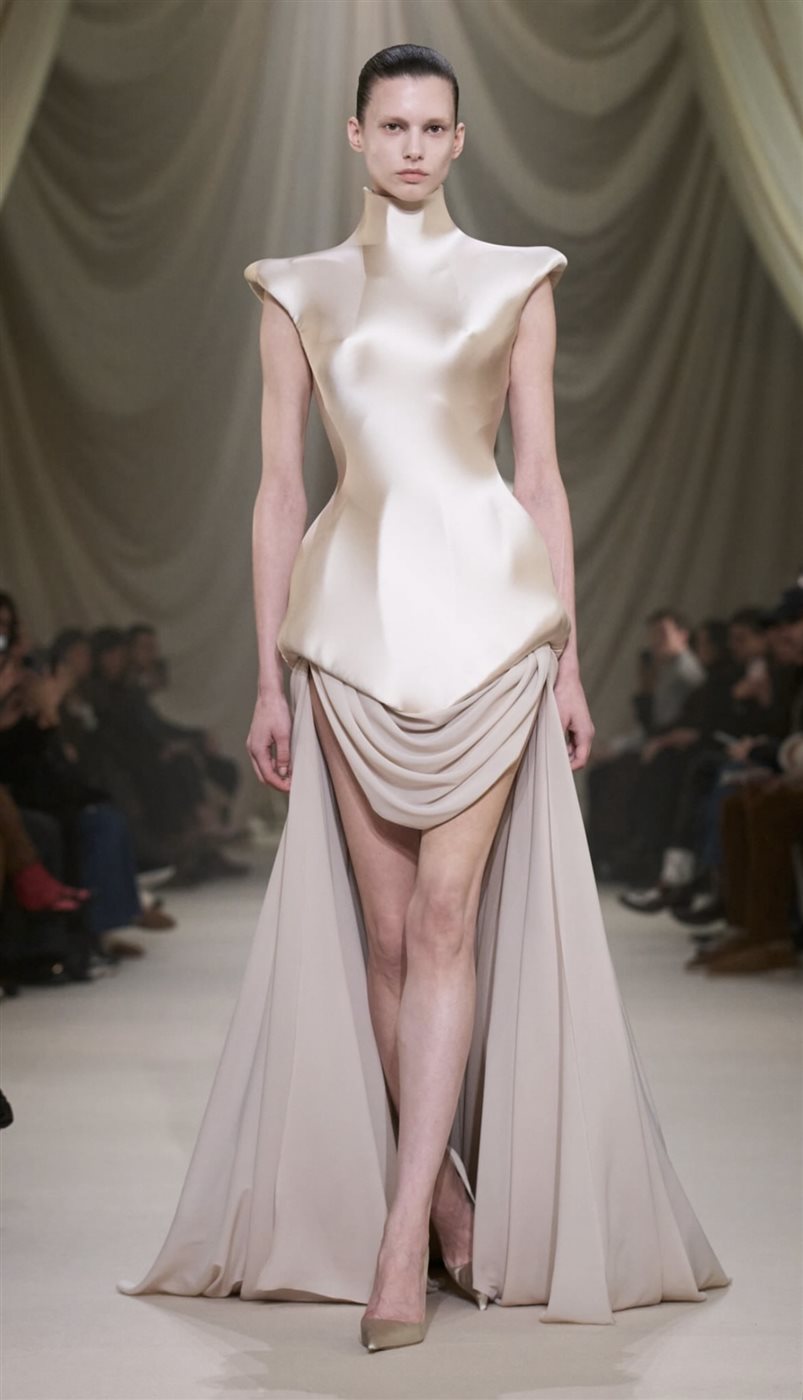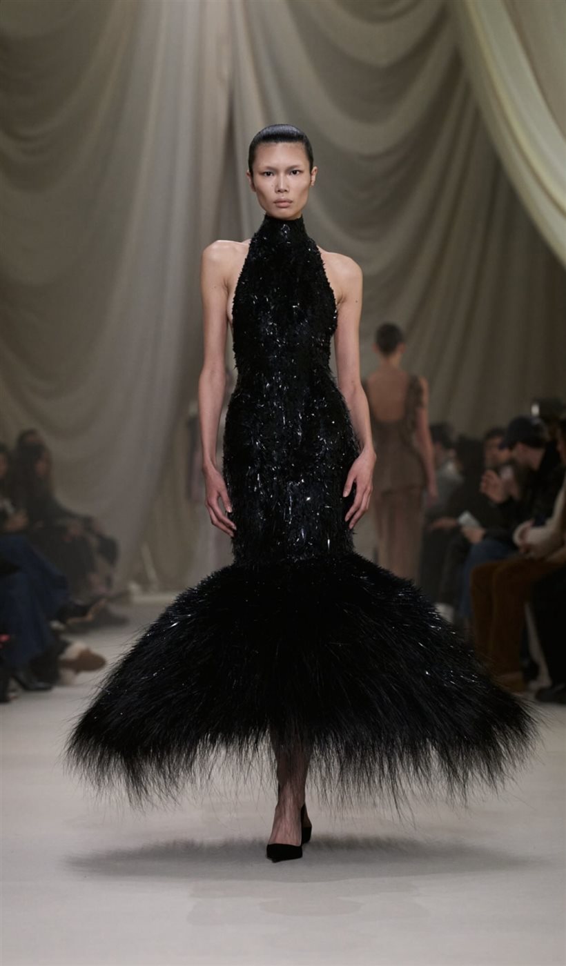 الحِرفية العالية كانت حاضرة بقوة، من خلال تفاصيل دقيقة، تطريزات محسوبة، واستخدام ذكي للخامات، عكس احترام الدار لتقاليد الهوت كوتور، وفي الوقت نفسه رغبتها في إعادة تفسيرها بروح معاصرة. الأقمشة بدت وكأنها جزء من الفكرة، لا مجرد وسيلة لتنفيذها، حيث ساهمت في إبراز البنية والتشكيل، ومنحت القطع بعداً فنياً واضحاً.