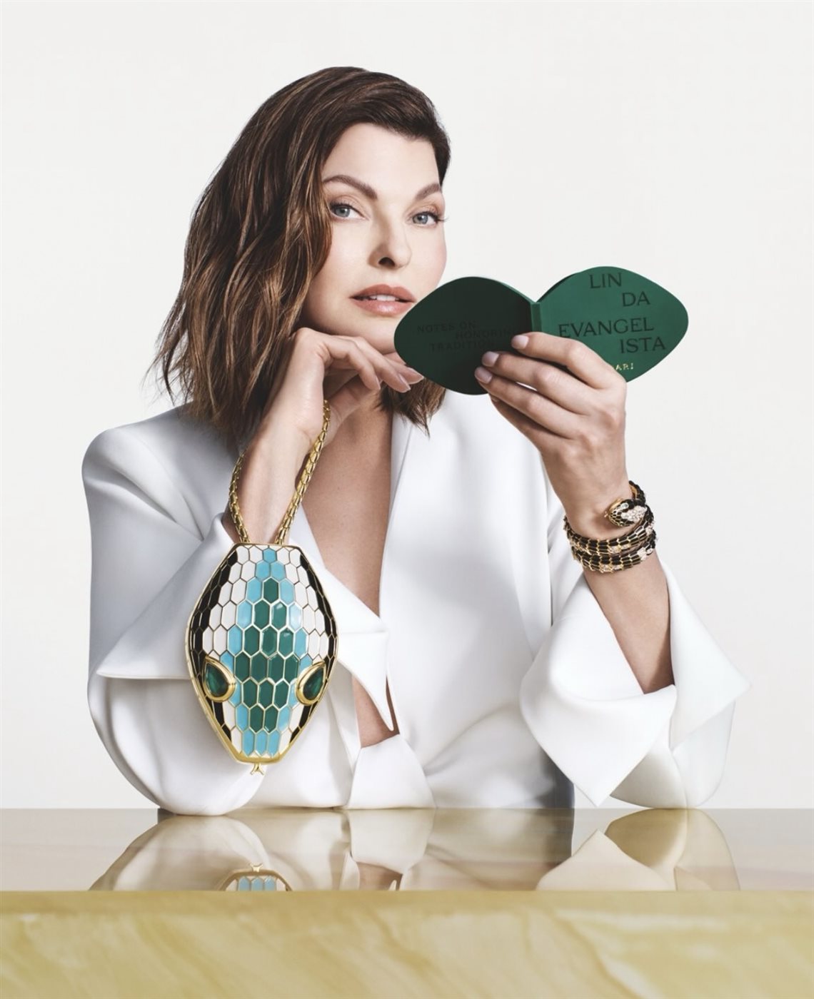 وتشارك ليندا إيفانجليستا، إحدى أيقونات عالم الأزياء، في هذا المشروع بصفتها صديقة للدار، لتقدم تأملًا عميقًا حول معنى الرموز الخالدة وقوتها المستمرة. حضورها لا يقتصر على كونها وجهًا معروفًا، بل يحمل دلالة رمزية بحد ذاته، فهي تمثل جيلًا من الأناقة التي صمدت أمام تغيرات الموضة السريعة، تمامًا كما فعل رمز سيربنتي. من خلال رؤيتها، يتحول حمل حقيبة Minaudière المزينة بسيربنتي إلى فعل ثقافي يتجاوز الشكل، ليعبر عن هوية وذاكرة وإرث.