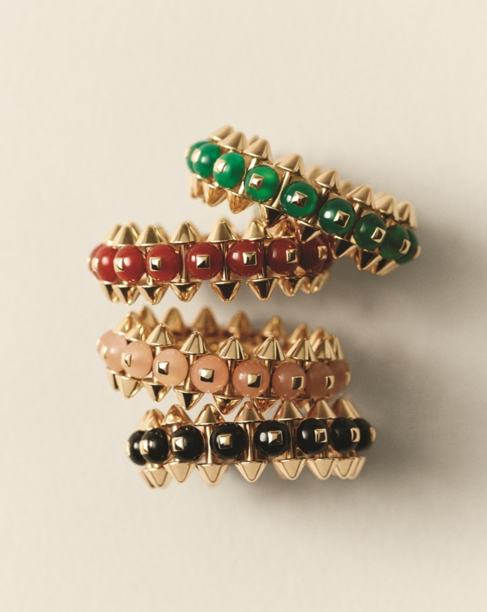 تتوسع المجموعة لتشمل استخدام أحجار ملوّنة تعكس روح المغامرة، مثل العقيق اليماني، والعقيق المصبوغ بدرجات الأحمر والأخضر، إضافة إلى الكالسيدوني الوردي. وتأتي هذه الأحجار في تصاميم بأحجام جريئة وأساليب ارتداء متنوعة، تناسب الإطلالات اليومية كما تواكب المناسبات الخاصة، مع الحفاظ على توقيع «كارتييه» الفاخر.