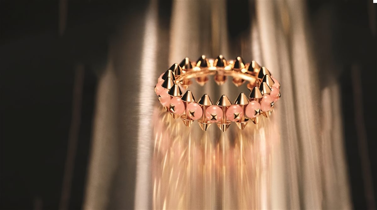 فالمسامير الهندسية، والخرز المعدني، والنتوءات الحادة، تجتمع داخل بنية شبكية دقيقة، تمنح المجوهرات طابعًا جريئًا يجمع بين الصرامة الميكانيكية وأناقة الحرفية الراقية. هذا التصادم البصري المتعمّد هو ما يمنح «كلاش دو كارتييه» هويتها الخاصة، كخط تصميمي يعكس الجرأة والتمرد الأنيق