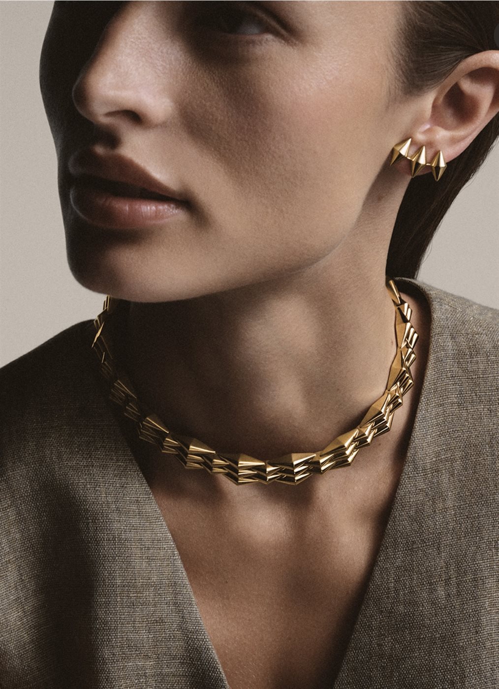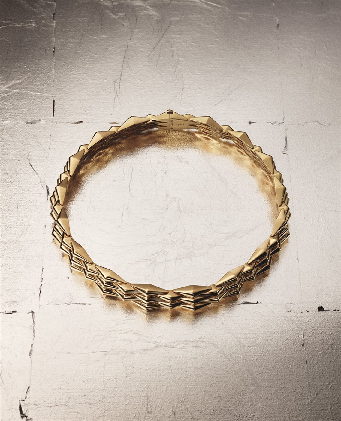 وتعتمد مجموعة Vimini على تحويل العناصر الكلاسيكية إلى إبداعات حديثة، حيث يظهر الذهب كعنصر أساسي نابض بالحياة، مُشكّل بأسلوب يبرز الحِرفية الدقيقة والاهتمام بالتفاصيل. التصاميم تستحضر فكرة النسج والمرونة، في إشارة إلى اسم Vimini، الذي يعكس إحساسًا بالحركة والانسيابية، مع الحفاظ على قوة الشكل وصلابته. هذا التوازن بين النعومة والقوة يعكس هوية Bvlgari التي لطالما تميّزت بالجرأة والفخامة غير التقليدية.