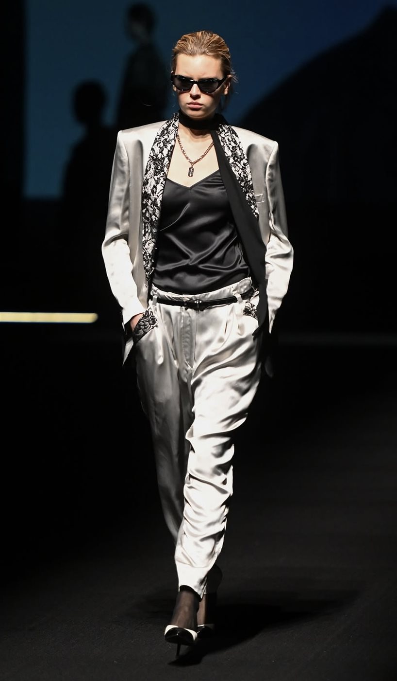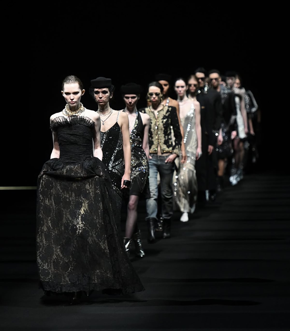 وقدّمت John Richmond خلال العرض مجموعة اتسمت بالخطوط الجريئة والتفاصيل القوية التي تُعد جزءاً أساسياً من هوية الدار. وظهرت الإطلالات بتصاميم تجمع بين الطابع الكلاسيكي والعناصر العصرية، حيث برز استخدام الخامات الجلدية والقصّات الحادة التي تعكس أسلوباً يتميز بالطاقة والحضور القوي. كما حرصت الدار على إبراز روح التمرد التي تشتهر بها منذ تأسيسها، مع إضافة لمسات حديثة تتماشى مع تطور اتجاهات الموضة العالمية.