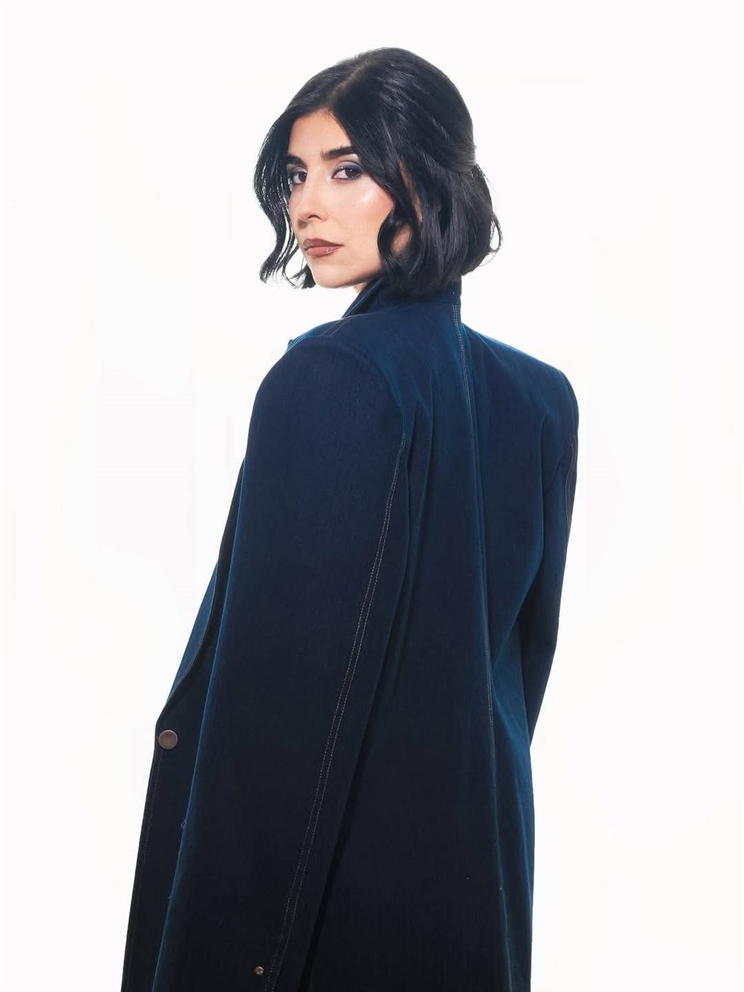 أما المكياج، فجاء صريحًا ومتناسقًا مع الإطلالة، مع اعتماد ظلال عيون باللون الأزرق، انسجمت مع أجواء الدنيم ومنحت نظرتها عمقًا لافتًا، إلى جانب بشرة برونزية متوهجة وبلاشر خوخي أضفى دفئًا