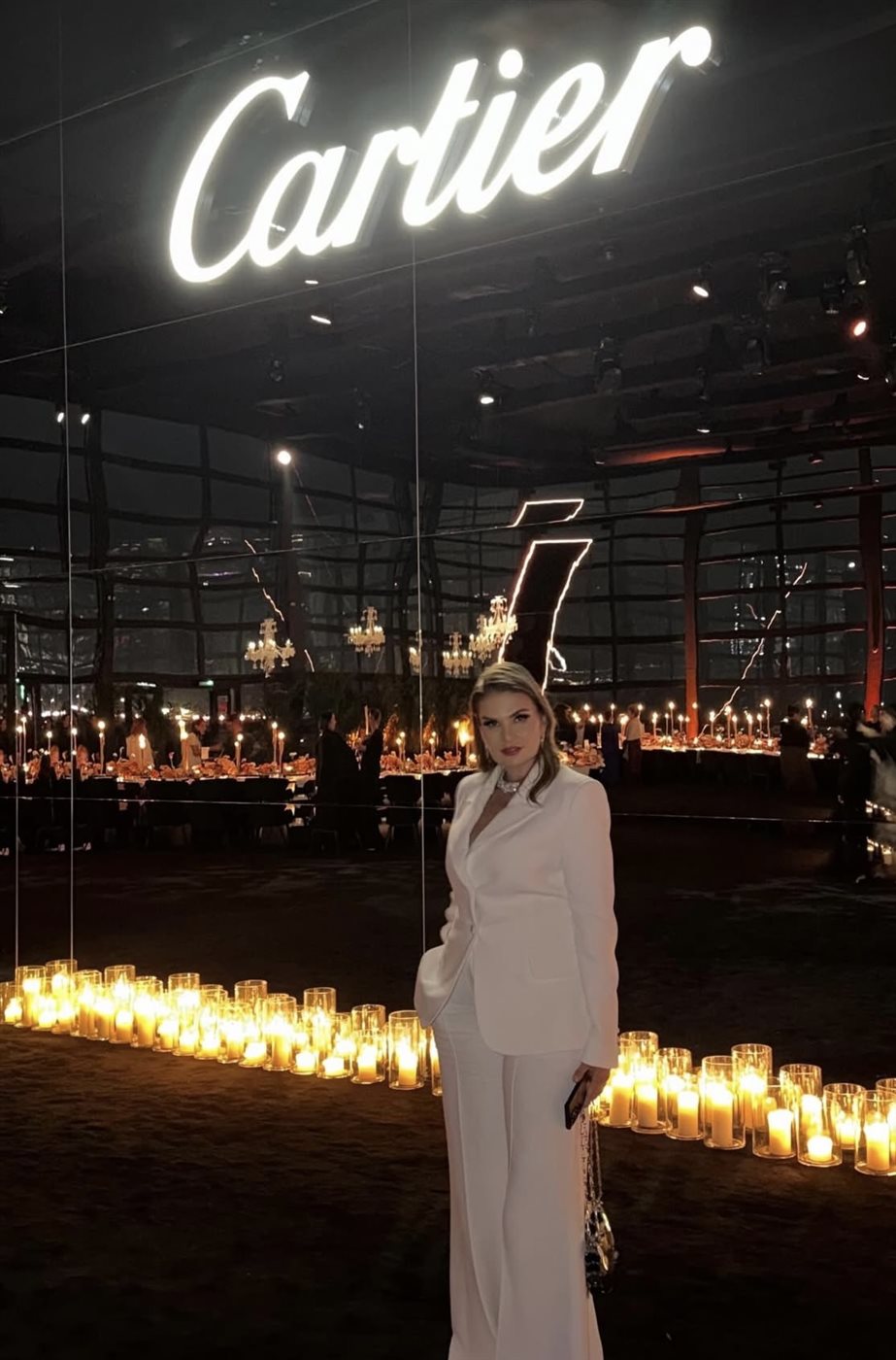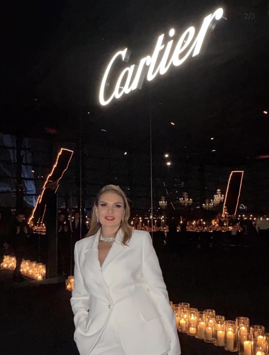 الصور التي نشرتها يسرا عبر حسابها الرسمي عكست أجواء استثنائية، إذ ظهرت داخل قاعة واسعة أضيئت بمئات الشموع المصطفة على الأرض في تنسيق هندسي أنيق، فيما تألق شعار Cartier مضيئاً في الخلفية، ليؤكد الطابع الاحتفالي الخاص بالحدث. هذا المشهد الدرامي منح الإطلالة بعداً سينمائياً زادها قوة وجاذبية.