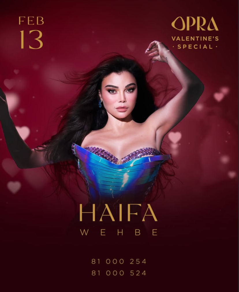 تحيي النجمة اللبنانية هيفاء وهبي حفلا ضخما في بيروت يوم 13 فبراير على مسرح “أوبرا بيروت” حيث تقدم مجموعة من أشهر أغانيها التي أشعلت الساحة الغنائية في أجواء احتفالية مميزة بعيد الحب.