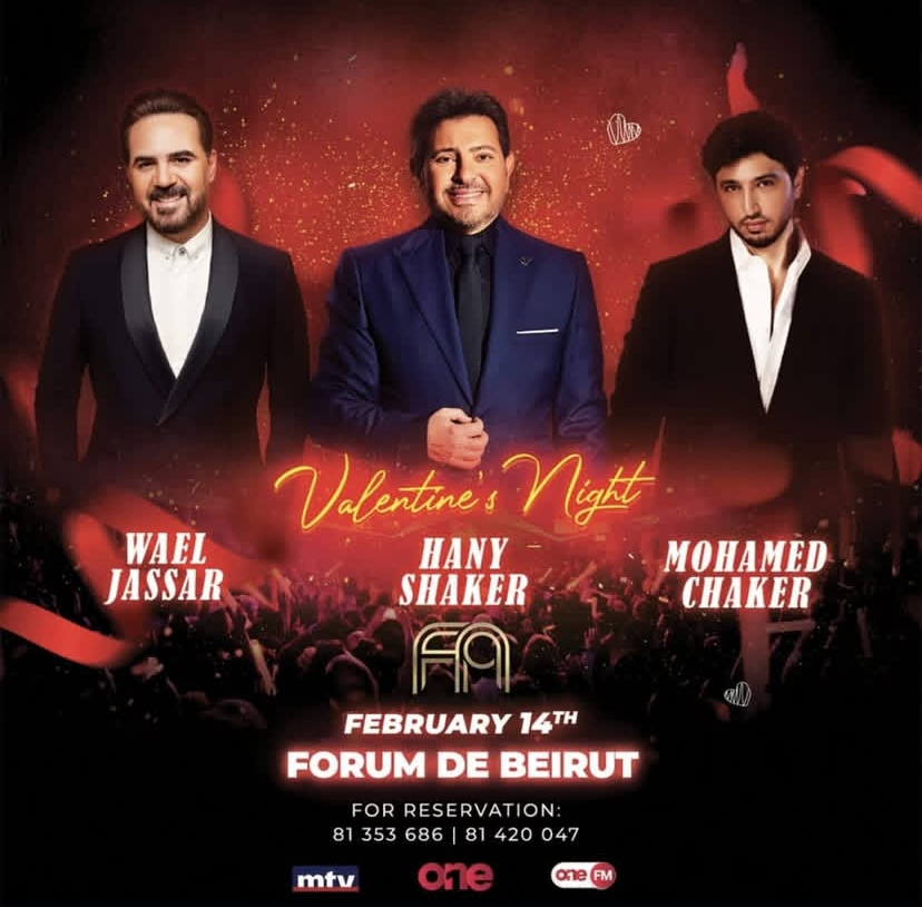 تحتضن العاصمة اللبنانية بيروت حفلا طربيا ضخما يجمع هاني شاكر ووائل جسار ومحمد فضل شاكر مساء عيد الحب 14 فبراير على مسرح "فوروم دي بيروت".