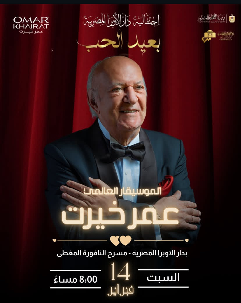 يشعل الموسيقار الكبير عمر خيرت أجواء عيد الحب 2026 في مصر من خلال حفل ضخم على مسرح النافورة بدار الأوبرا المصرية مساء السبت 14 فبراير.