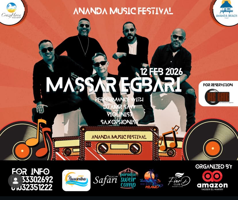 يحيي فريق “مسار إجباري” حفل عيد الحب 2026 بمدينة نويبع المصرية مساء الخميس 12 فبراير على شاطئ كريزي هورس داخل “أناندا”.