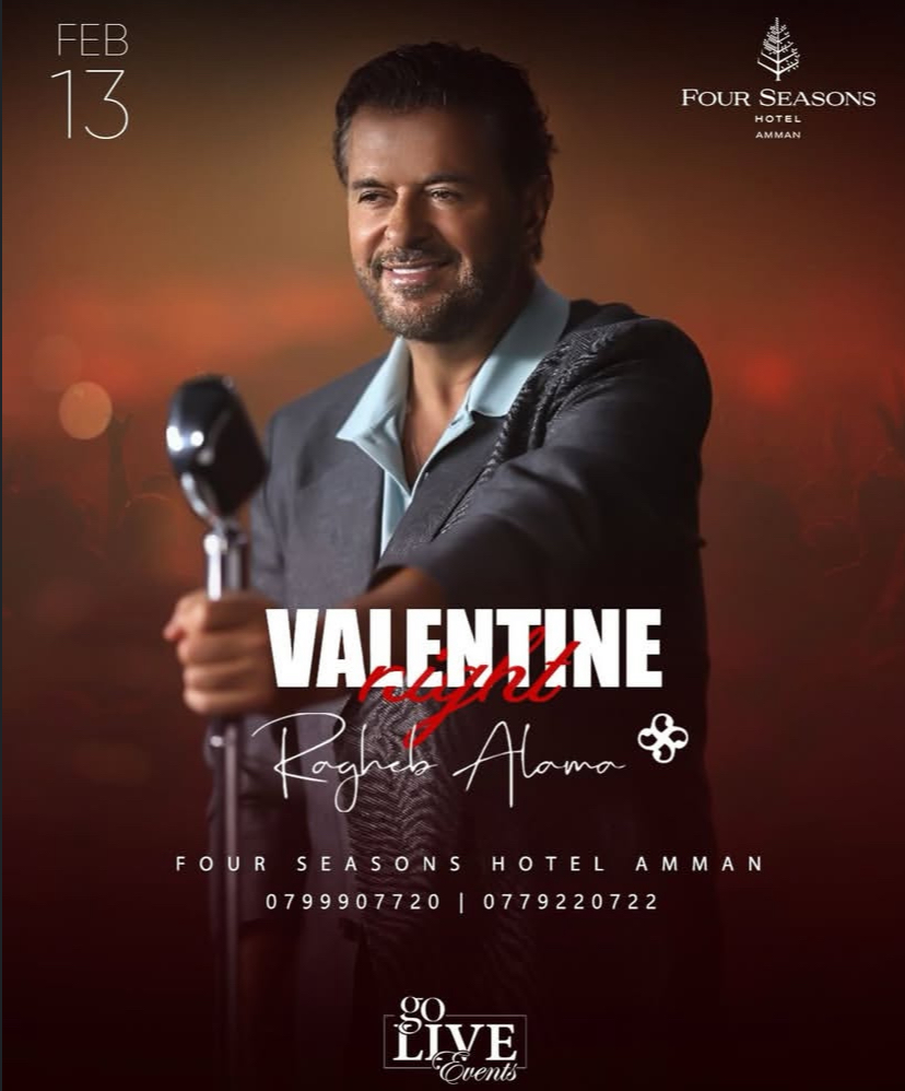 يحيي النجم راغب علامة سهرة عيد الحب في الأردن من خلال حفل يقام على مسرح فندق “الفورسيزون” بعمان مساء الجمعة 13 فبراير.