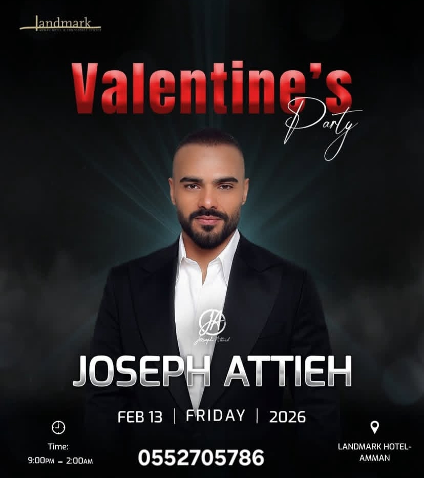 يتألق النجم اللبناني جوزيف عطية في حفل عيد الحب بالأردن إذ يحيي سهرة غنائية في فندق “اللاندمارك” بعمان مساء الجمعة 13 فبراير.
